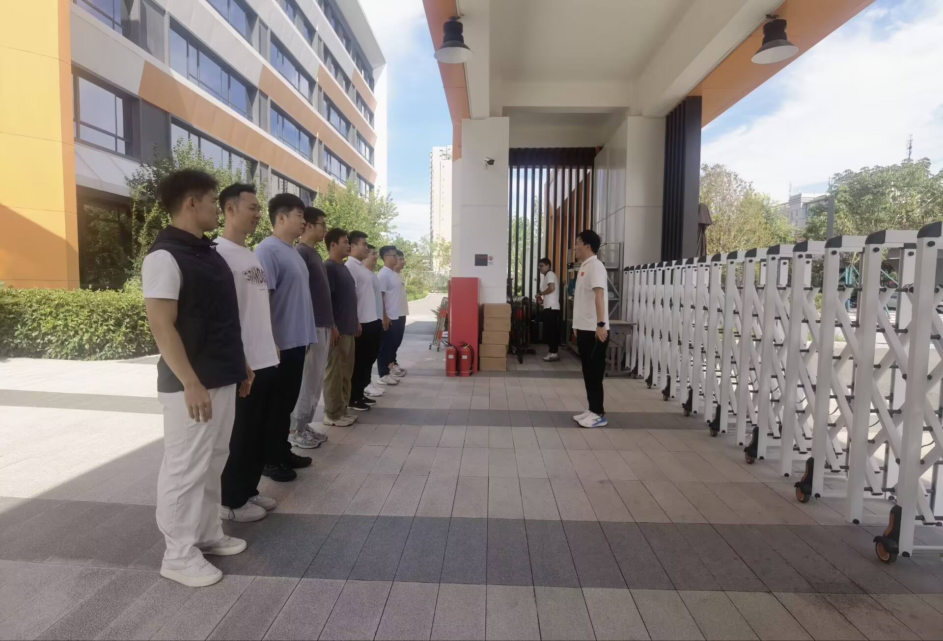 会后迅速投入消防疏散演练,明确护卫队防爆任务,手持灭火器规范操作,每一步都透着对校园安全的重视。