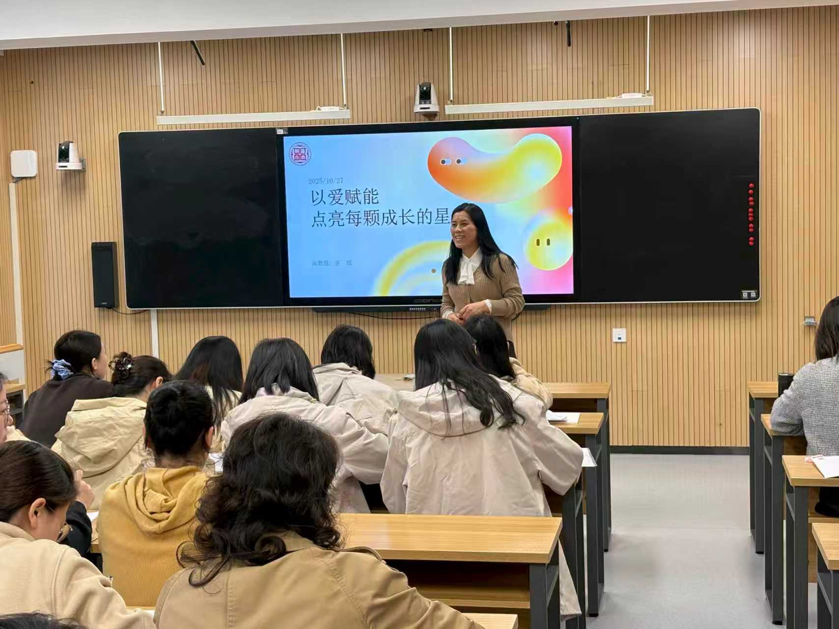 四位老师从日常班级管理、学生习惯培养、特殊学生引导、家校协同育人等多个维度切入,将“正面引导”理念融入具体的教育场景中:通过“有限选择”激发学生自主学习动力的巧妙尝试;以“共情倾听”化解学生矛盾的温暖瞬间;用“鼓励式评价”重建学生自信的坚持与坚守。鲜活的教育事例、细腻的育人细节,不仅展现了四位教师在教育教学中的用心与智慧,更让在场教师深切感受到“和善与坚定并行”的教育力量,不少感人片段引发全场共鸣。