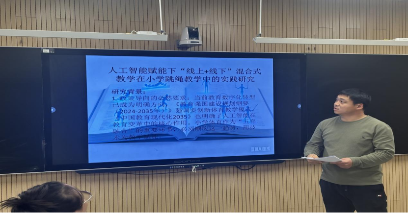 田翔与孙伏宇老师分别结合课题研究,分享了“AI赋能体育教学”的实践探索与低段田径游戏化教学的融合策略。他们致力于以科技增强课堂实效,以趣味激发学生学习兴趣,为体育课堂的创新实践提供了新思路。