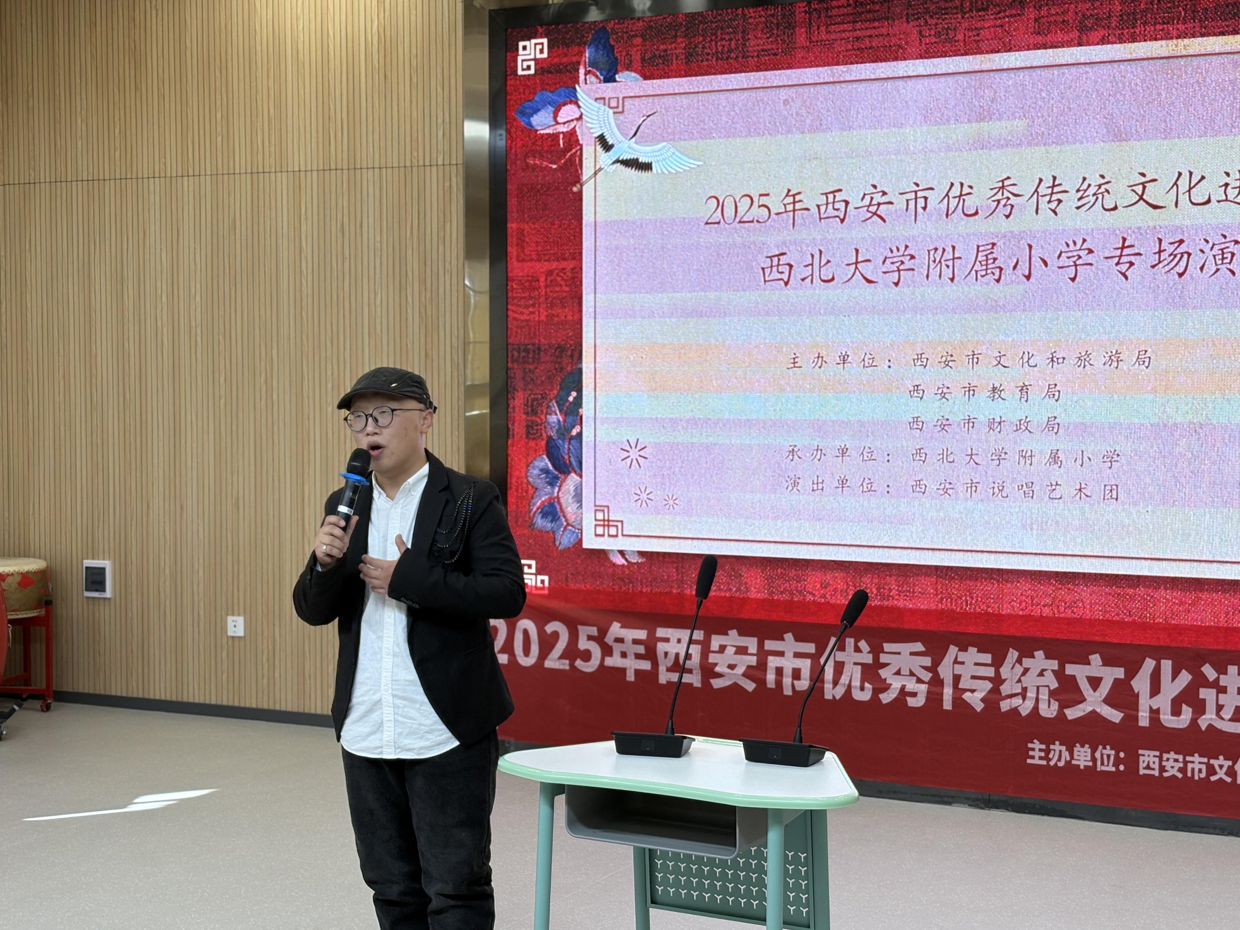 当曲艺的鼓点邂逅童真的眼眸,当经典的旋律萦绕书香校园,一场沉浸式的中华优秀传统文化盛宴在秉持“善博雅美”校训的西北大学附属小学温情上演。近日,西安演艺集团的艺术家们携满腔热忱走进校园,以曲艺为桥、以歌声为媒,为五年级学子们开启了一段领略传统文化魅力、践行校训精神的奇妙旅程。