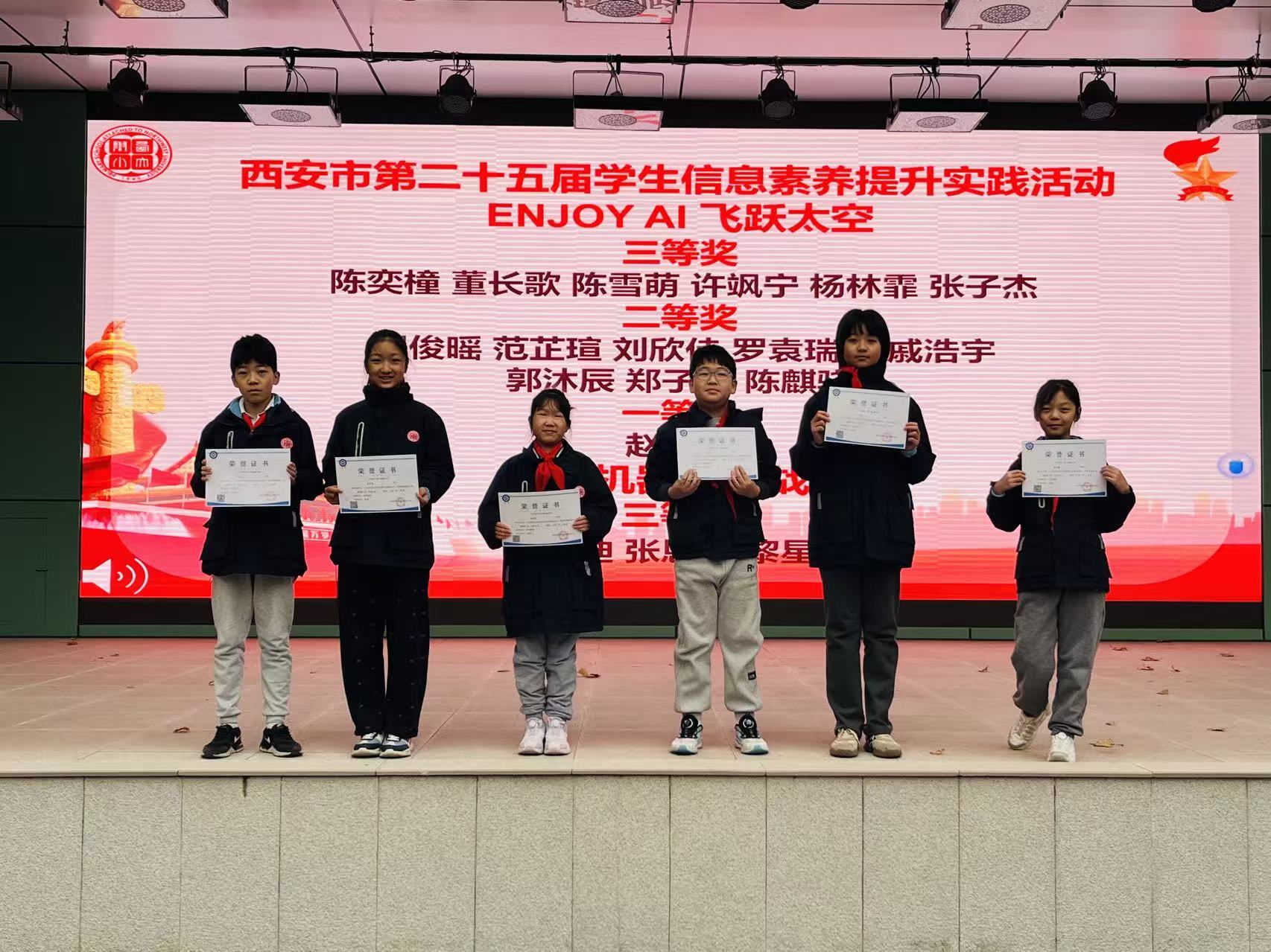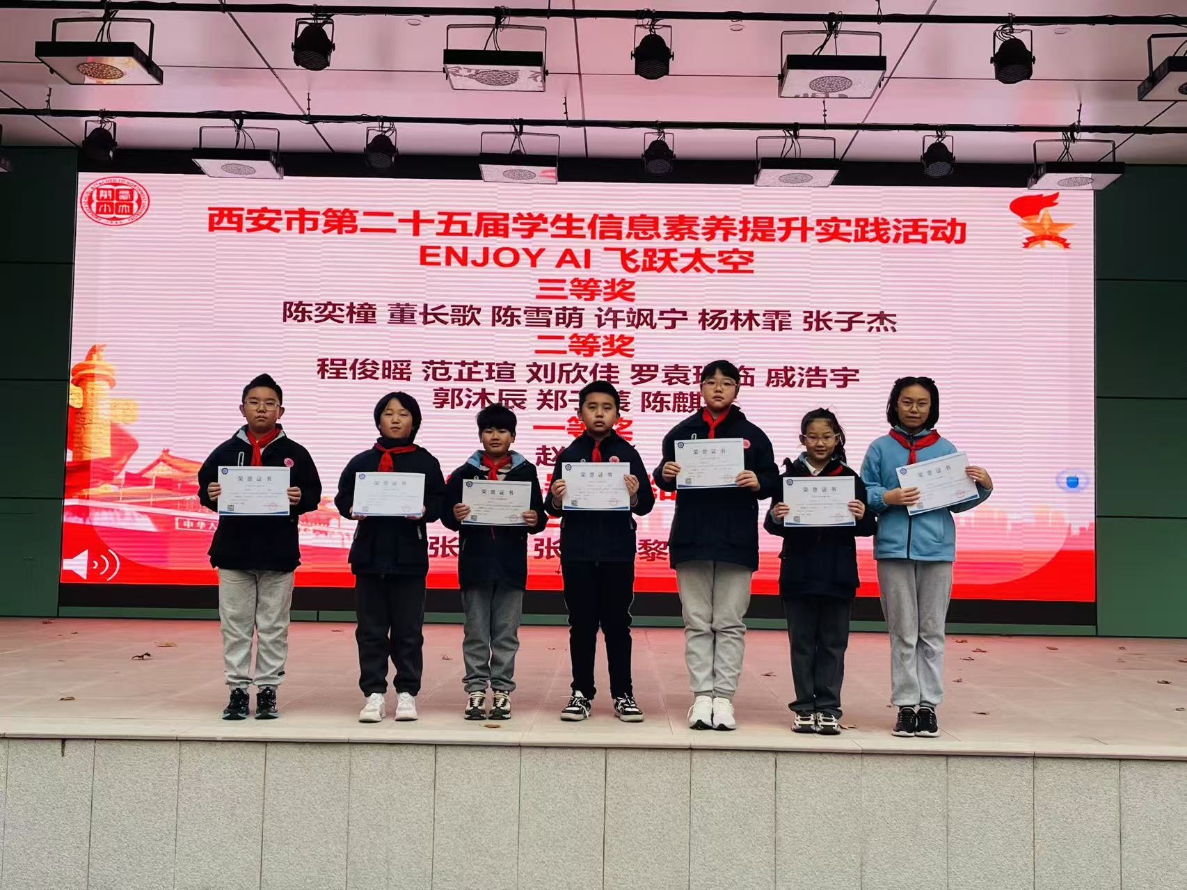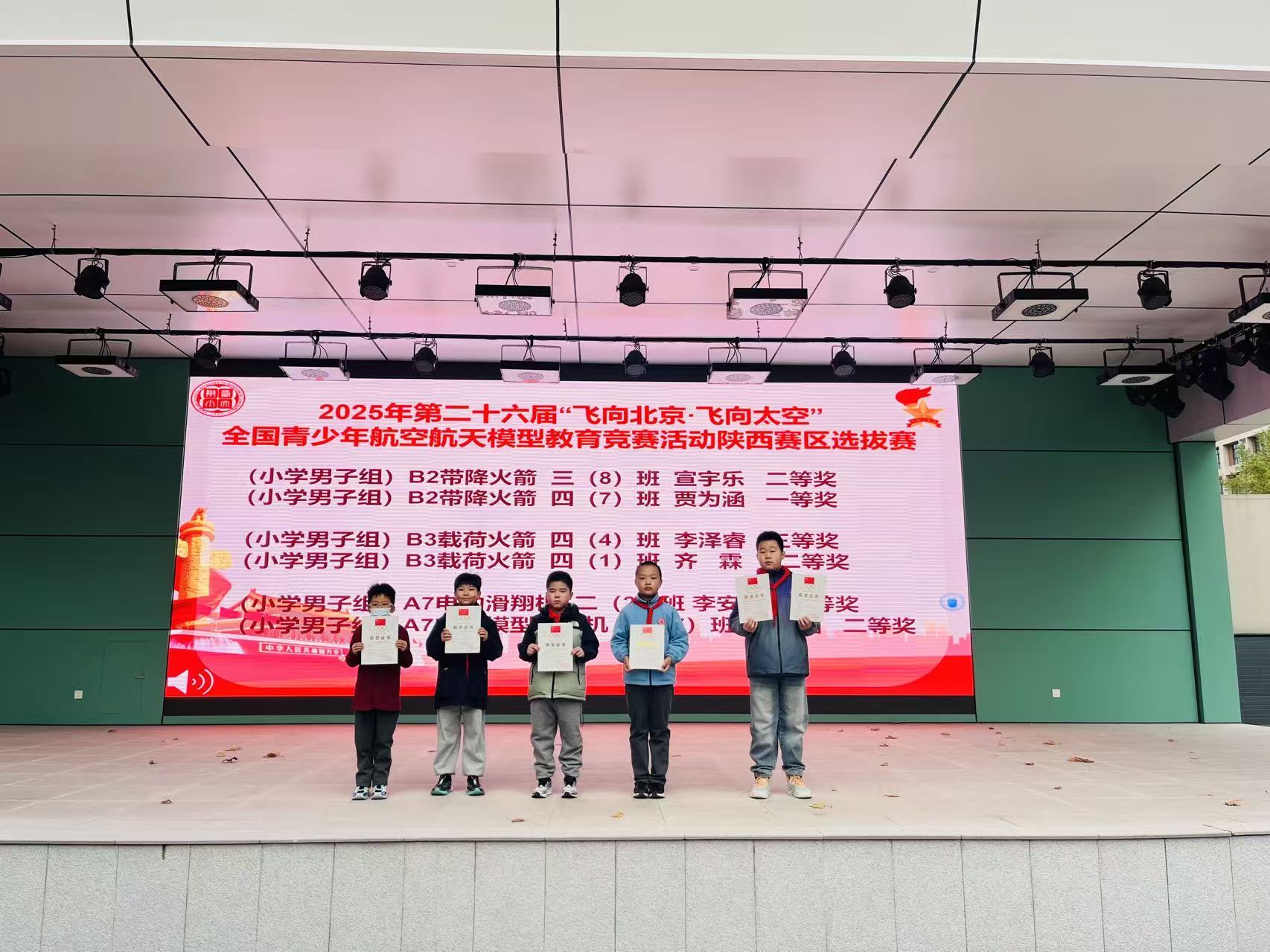 11月24日早晨升旗仪式结束后,学校特举行竞赛获奖学生专项颁奖仪式。颁奖现场,课程中心主任蒋海丽首先详细回顾学生参赛亮点:在陕西省青少年航空航天模型教育竞赛中,学生们凭借精准的模型操控技巧与富有创意的设计方案,充分展现对航空航天领域的热爱与钻研精神;参与西安市学生信息素养提升实践活动时,同学们围绕数字创作、智能应用等主题完成作品,凸显扎实的信息科技素养与实践能力;在VEX机器人挑战赛里,参赛团队分工协作、默契配合,通过编程调试与机械搭建,高效完成机器人任务执行,彰显团队协作力与创新思维。