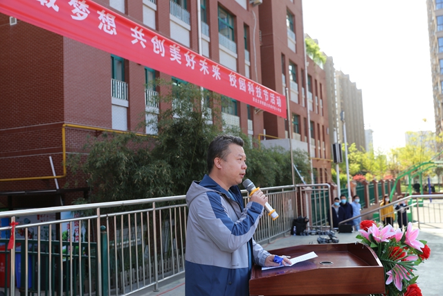 杨校长为开幕式致辞,他鼓励孩子们用智慧的大脑、灵巧的双手去创造、去发明、去探索科学知识的奥秘,并希望孩子们学科学、用科学、讲科学、爱科学,挑战创新。