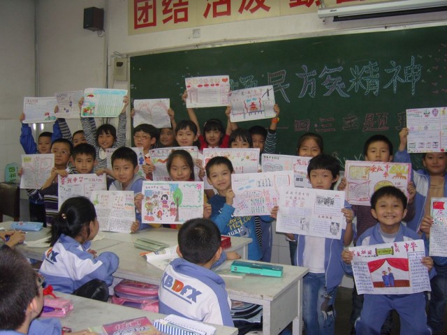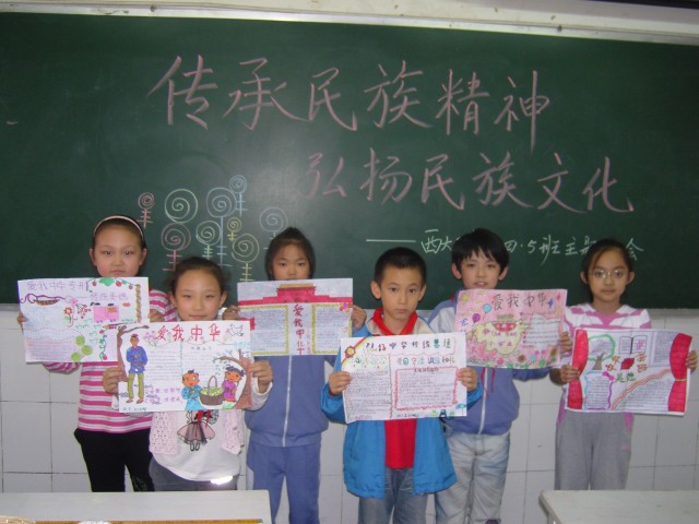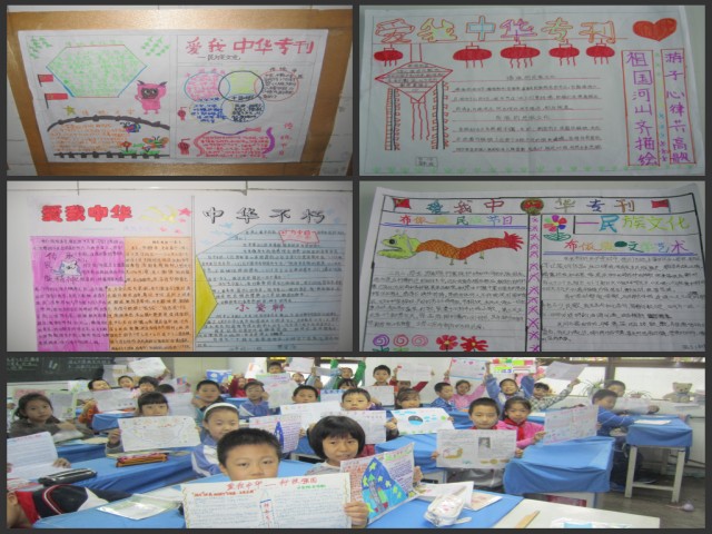 教学中我们也把弘扬和培育民族精神教育纳入其中,贯穿在教育教学的各个环节。结合语文学习,我们年级组织学生制作了一期以中国传统文化为主题的小报,五个班分别从灿烂文化、伟大人物、当代英模、中华美德、科技发展等方面去搜集资料并进行制作。在这一活动中学生们领悟到了伟大的民族精神,同时也极大地增强了民族自豪感。