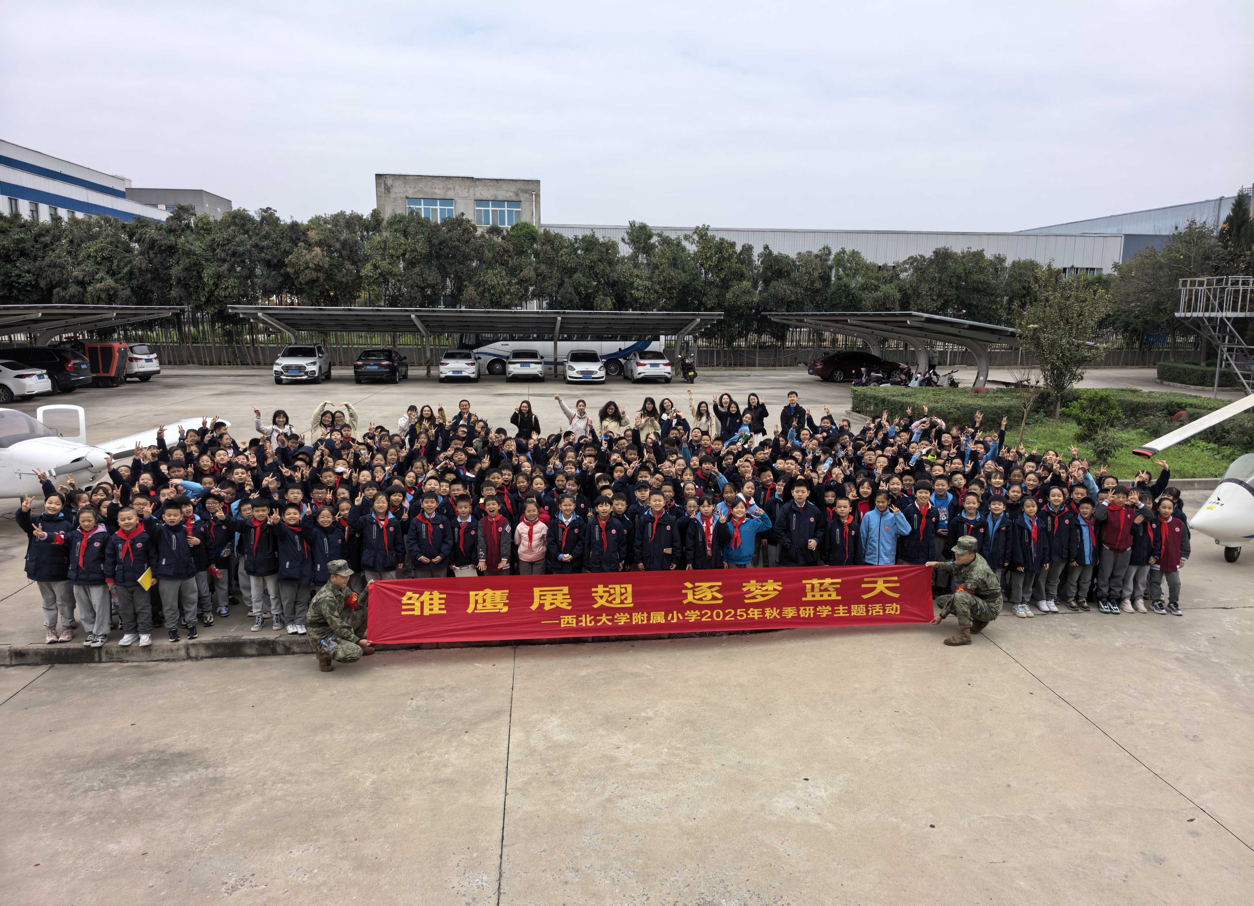 四年级学生走进阎良雏鹰展翅航空文化科普研学基地,开启航空探索之旅。在实训馆内,同学们围绕各类飞机观察学习,聆听飞行原理讲解,将书本知识与实物直观结合;随后体验航空应急撤离场景,学习正确流程,提升安全意识。移步研学馆,微观机场模型帮助孩子们理解机场运行全貌,VR航空模拟飞行让学子沉浸式感受驾驶乐趣。动手折纸飞机环节寓教于乐,学子们在折叠调试中深化对飞行原理的理解。航空科技文化在同学们心中种下了探索蓝天的种子,拓宽了航空视野。