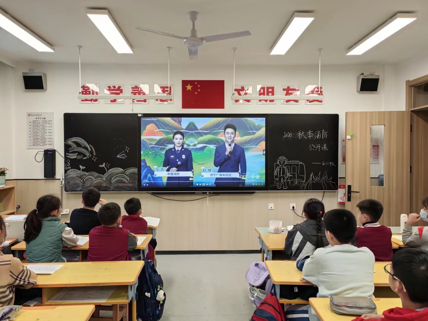 全校各班召开消防安全主题班会,同学们观看《2025年秋季全国中小学消防安全公开课》,学习相关知识,明确易引发火灾行为及遇火情应对办法。