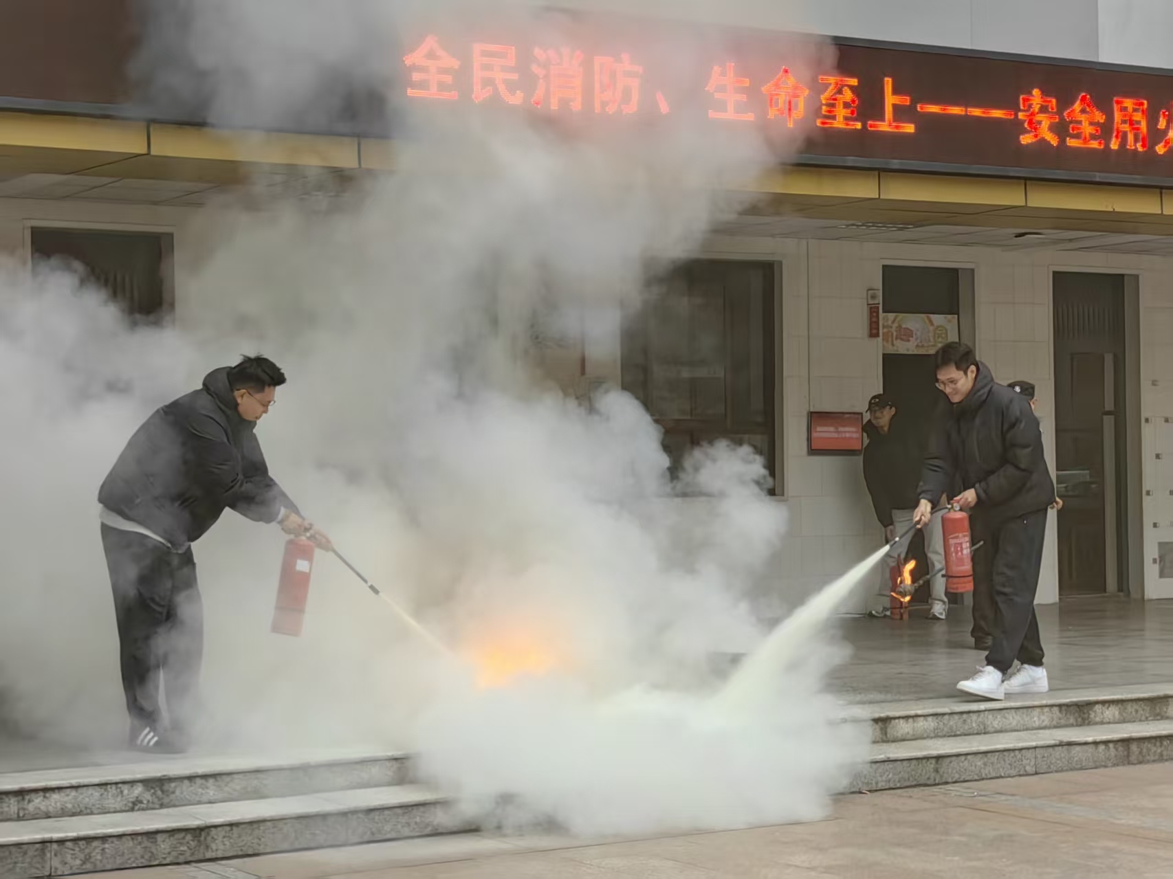 我还开开展了消防培训实操,培训讲师讲解消防器材原理和操作规范,老师们实践操作了灭火器和灭火毯使用全流程。