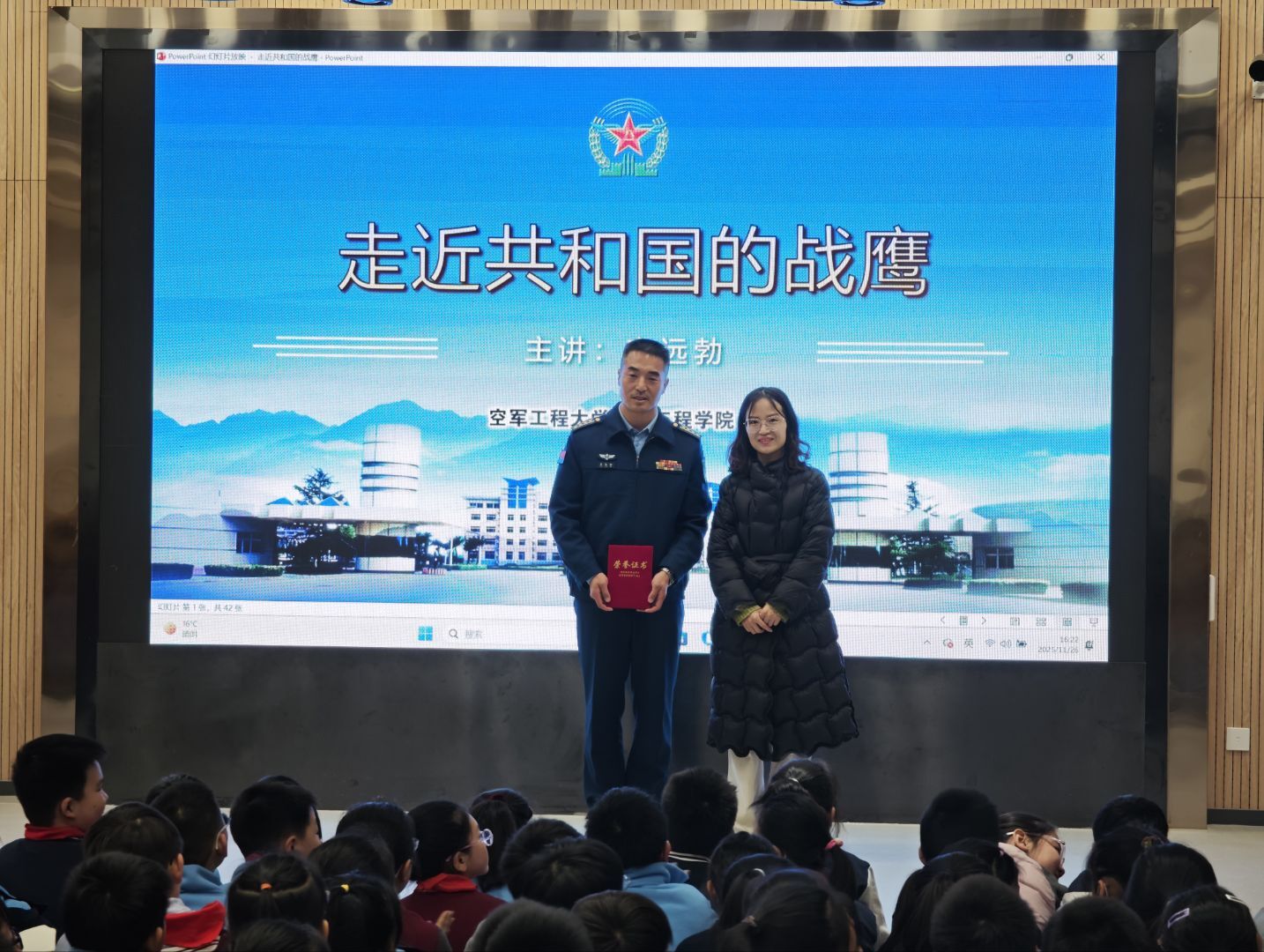 为落实立德树人根本任务,深化“善博雅美”校训育人内涵,加强小学生思想政治启蒙教育,厚植青少年家国情怀,引导学生树立国防意识、凝聚爱国合力,11月24日下午,西大附小在多功能厅隆重举行红色大讲堂“走进共和国的战鹰”主题教育活动。