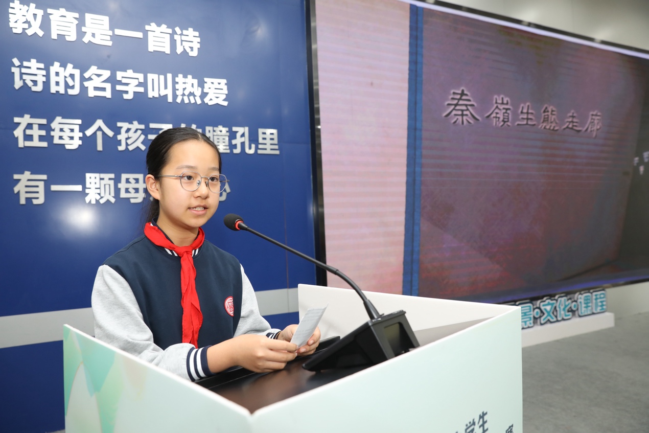 颁奖典礼现场氛围隆重热烈,我校教师代表与学生代表一同登台领奖,接过大赛颁发的各类荣誉证书,见证这份属于西大附小的荣耀。我校沈倬娅同学作为获奖学生代表登台发言,她分享了参与大赛的创作经历与对秦岭生态保护的理解感悟,真挚的表达赢得现场阵阵掌声。