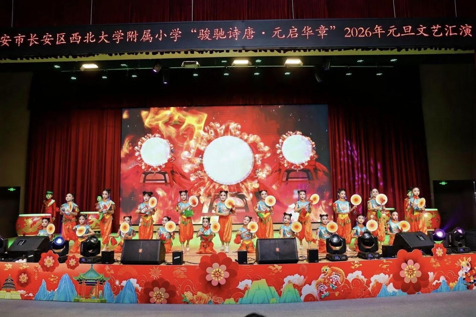 12月30日,西安市长安区西北大学附属小学“骏驰诗唐·元启华章”2026元旦文艺汇演,在校园里编织起一场贯通古今的文化绮梦。全体师生共赴这场诗意之约,以唐风为骨、童真为翼,挥别满载收获的旧年,拥抱满溢期许的新岁。