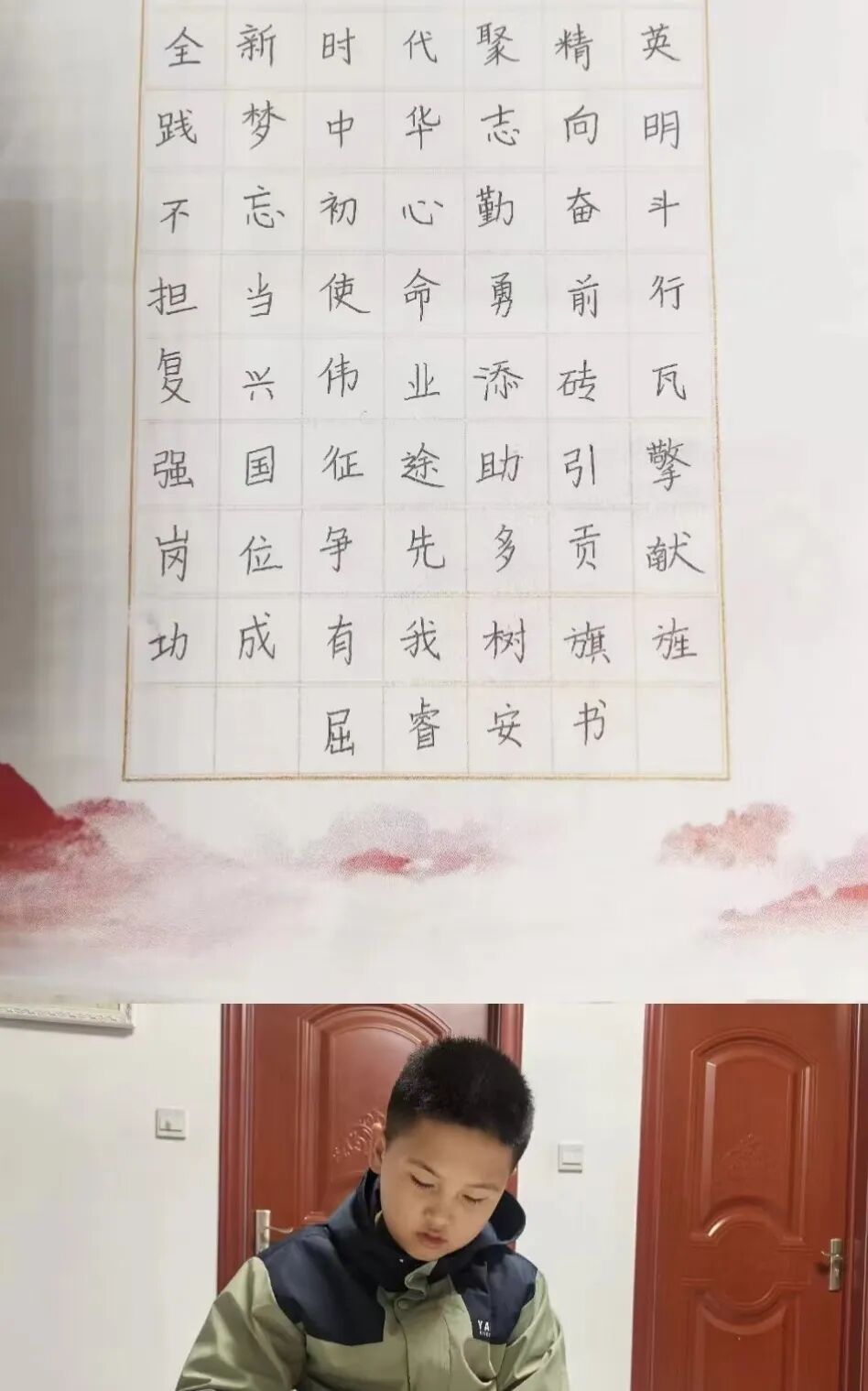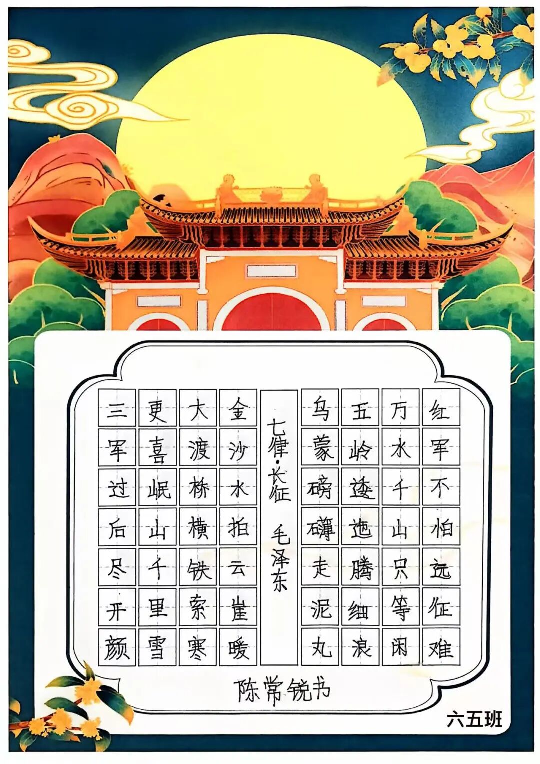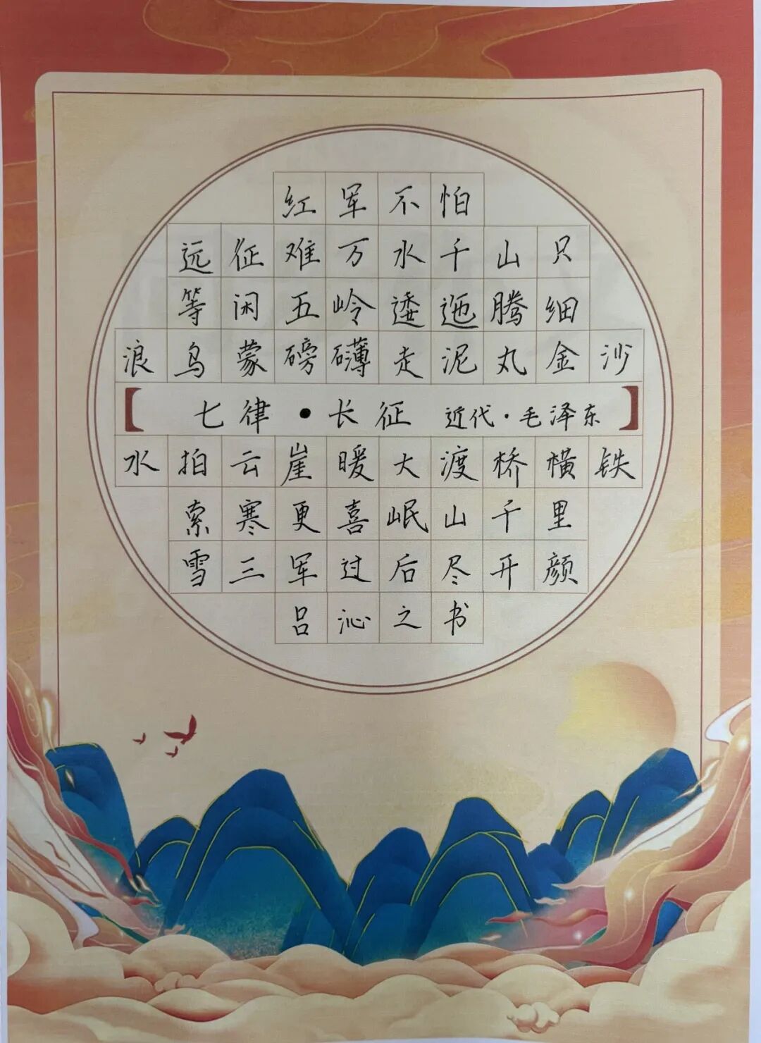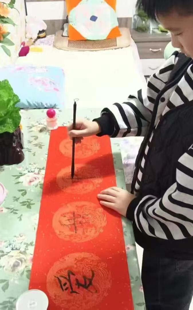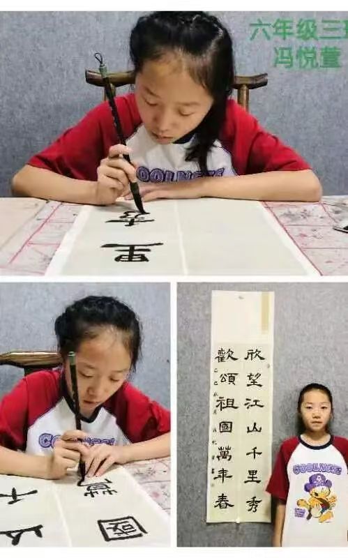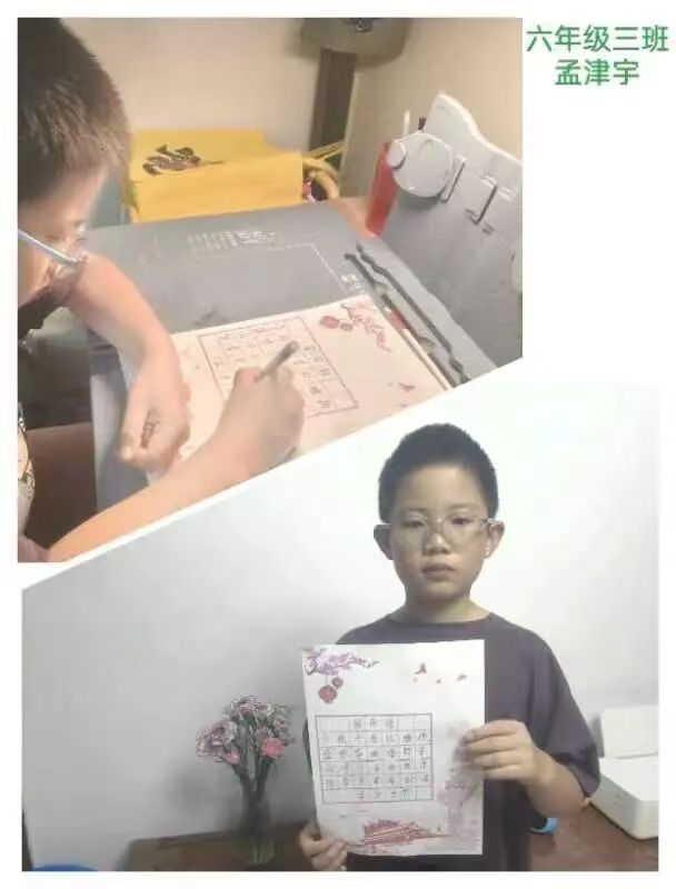 墨香萦绕间,“盛世中华”“国泰民安”跃然纸上。学生以笔为媒、以字传情,在横竖撇捺中感受文化魅力,将对祖国的祝福凝于笔墨。
