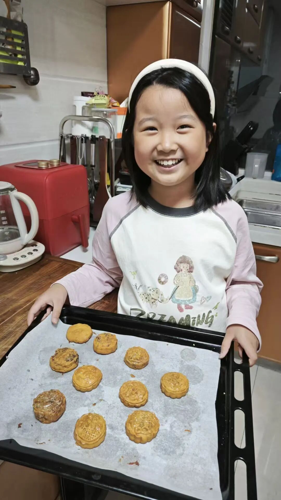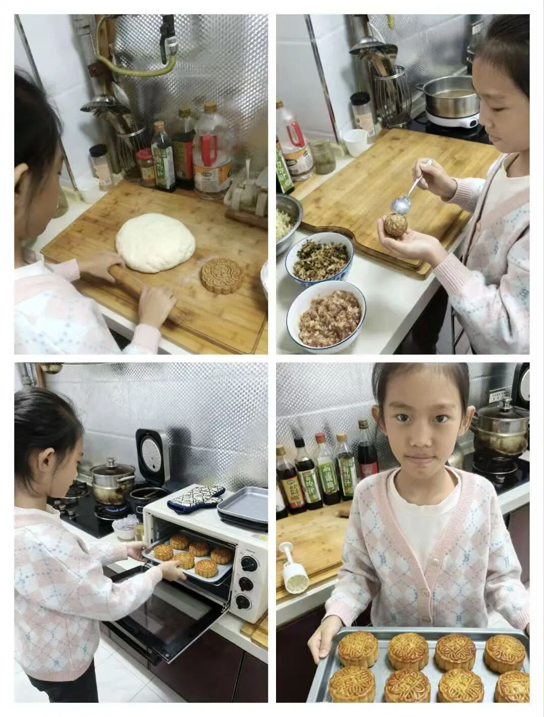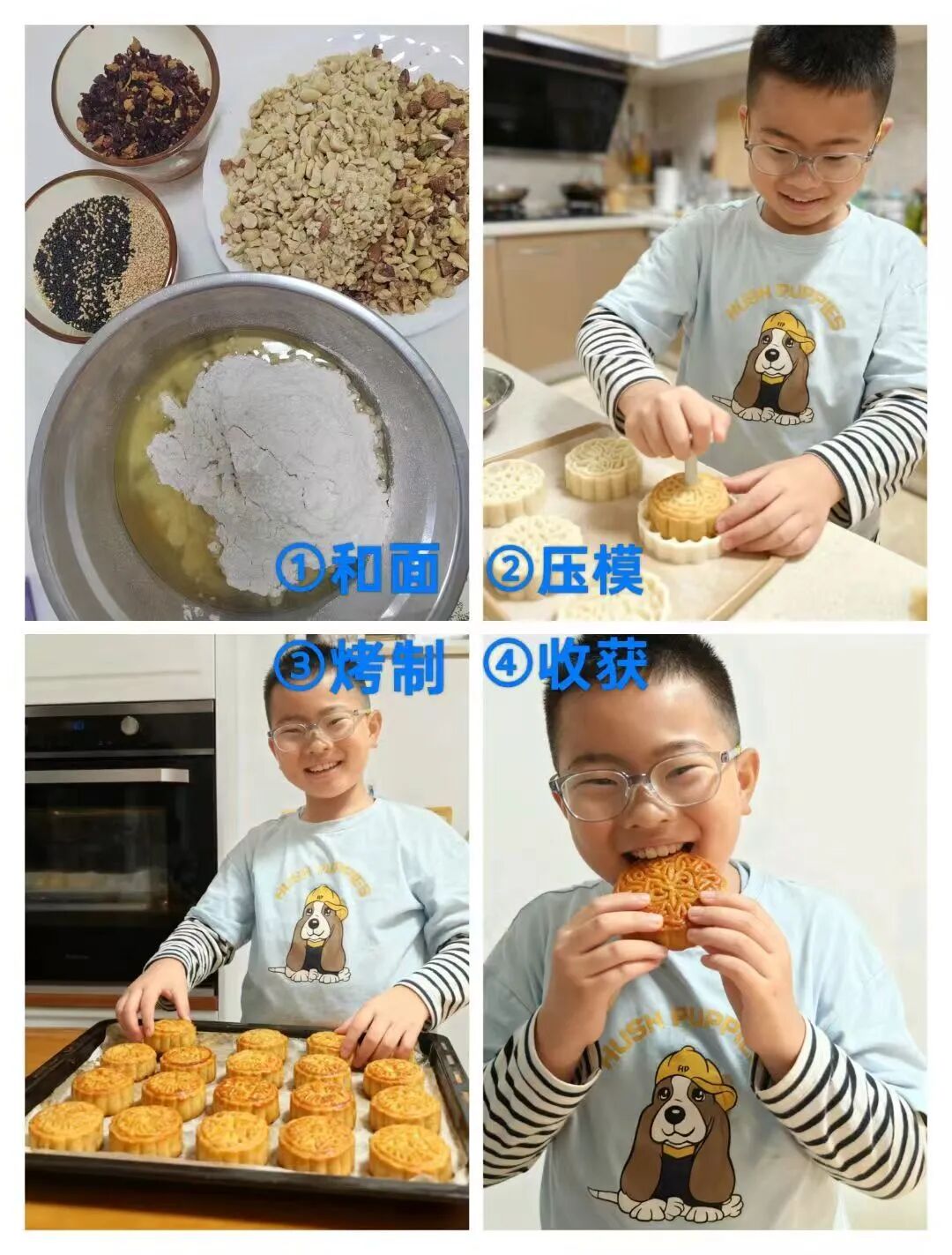 揉面团,包馅料,压花成型,学生亲手制作专属月饼。从食材到成品的过程,不仅锻炼动手能力,更让他们在指尖的温度里,读懂中秋“亲手创造团圆”的独特意义。