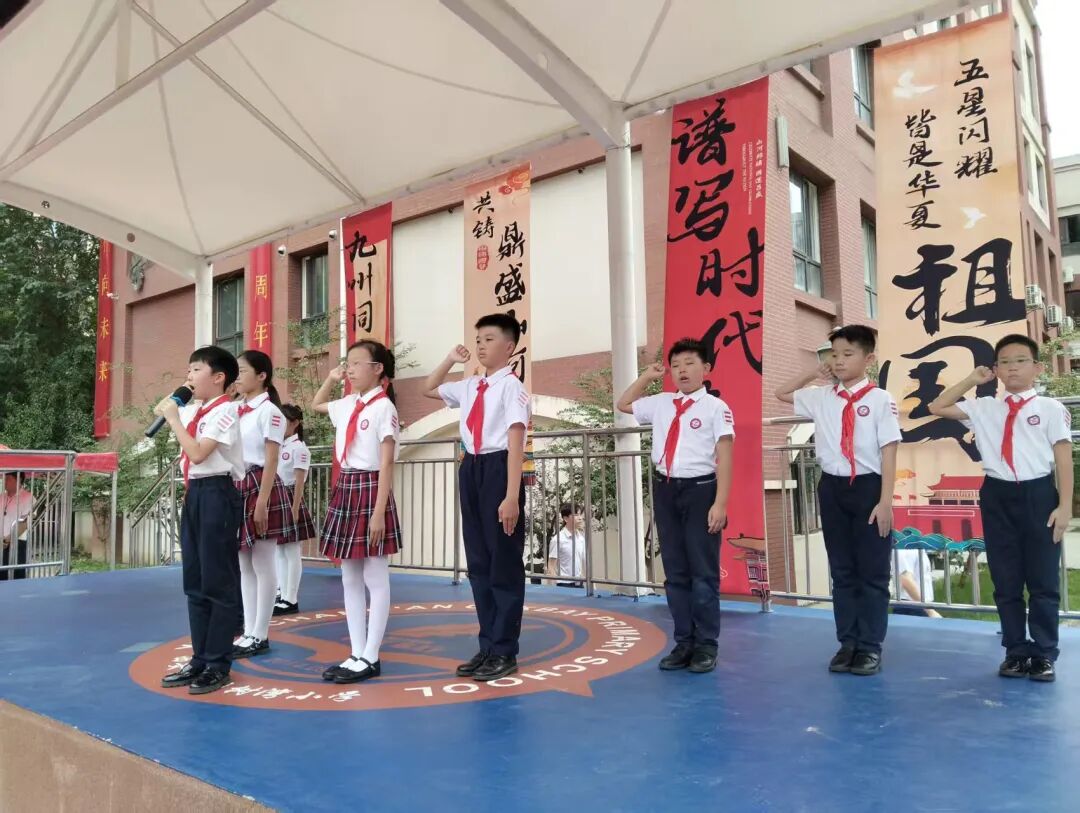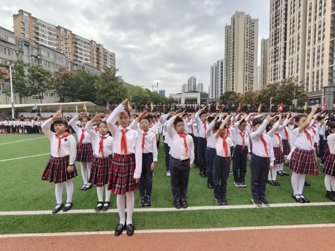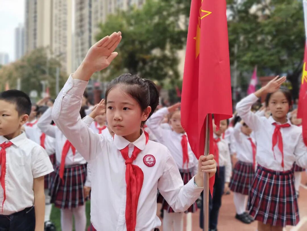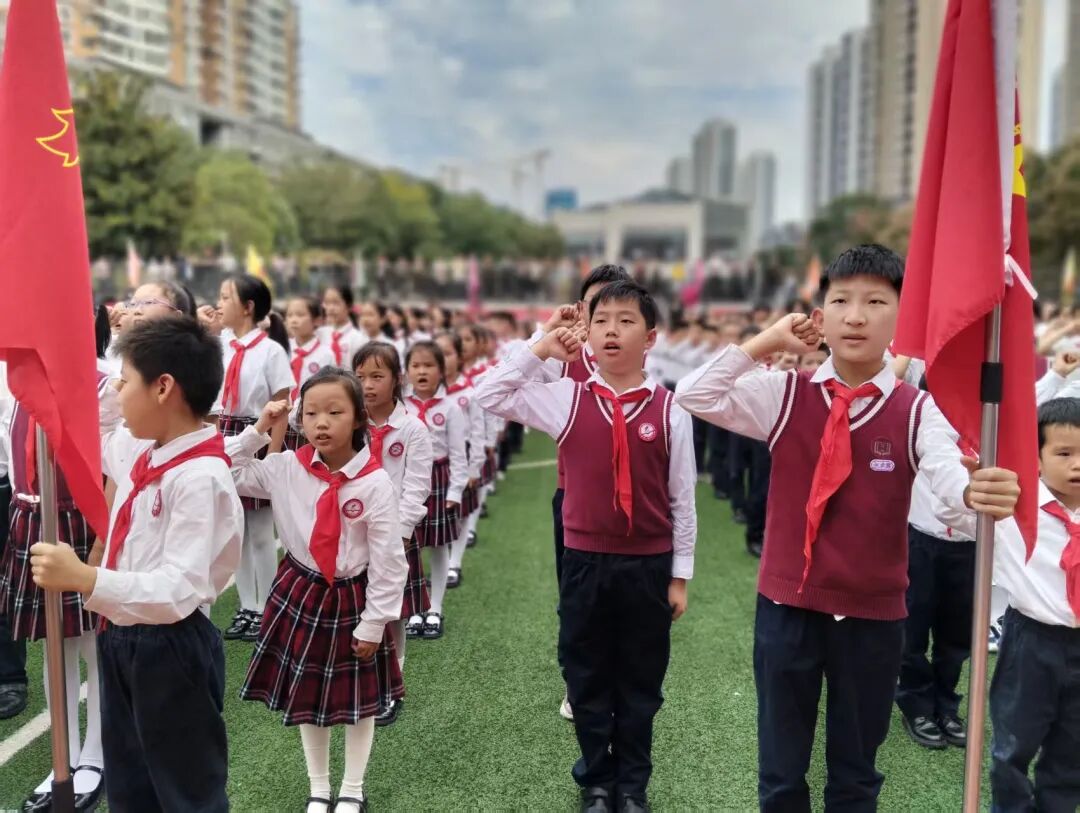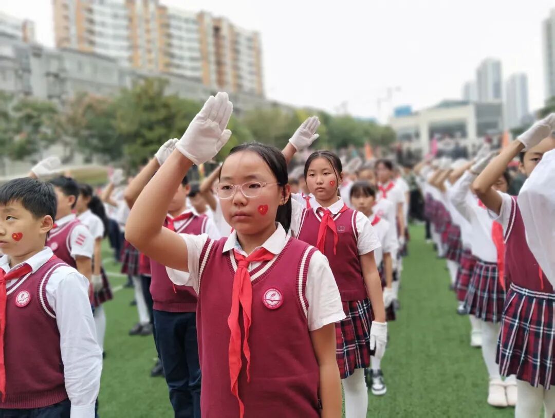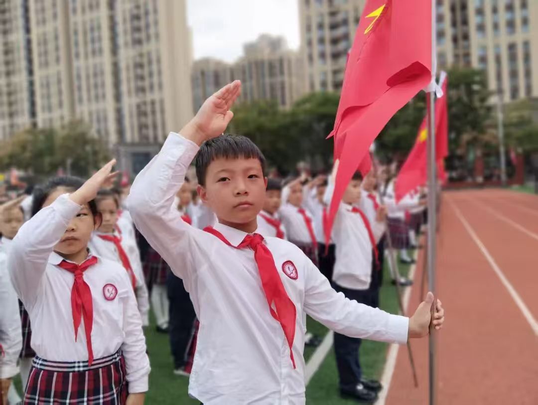 一面国旗映初心,一枚队徽担使命。本次活动不仅是对祖国76周年华诞的深情礼赞,更是对少年理想的有力召唤。愿全体师生以此次活动为起点,将爱国热情转化为奋进动力,让红领巾在新时代的阳光下更加鲜艳,让家国情怀在代代传承中绽放出照亮未来的光芒。
