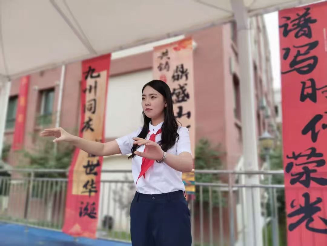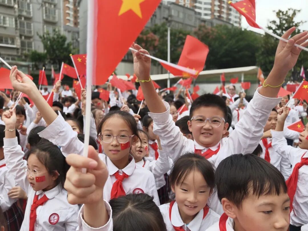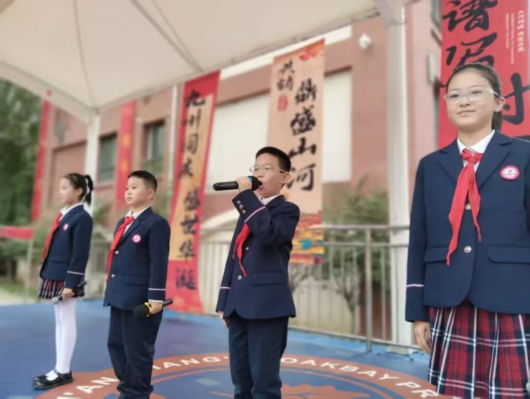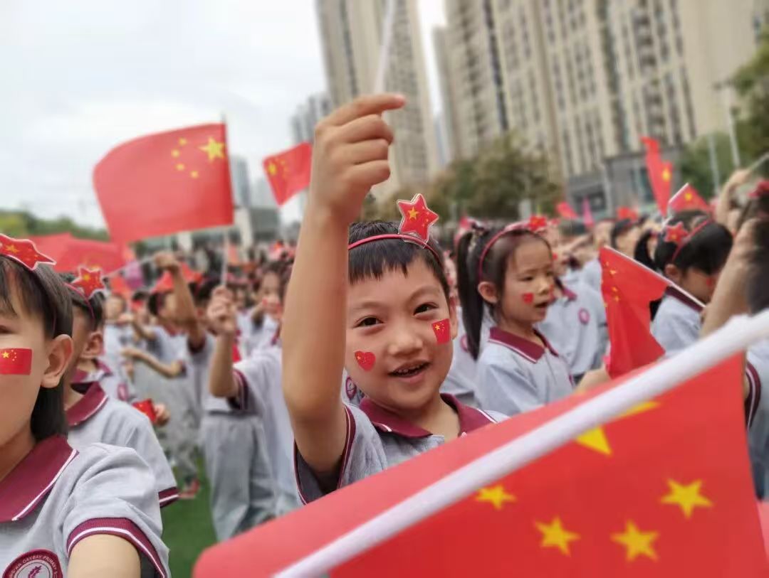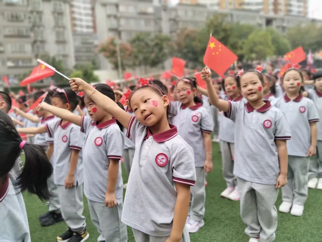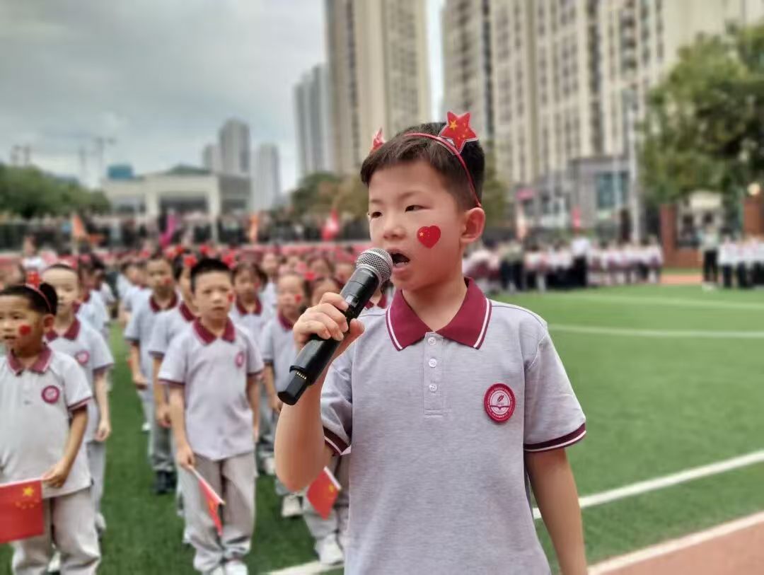 全体师生齐聚一堂,齐声唱响《歌唱祖国》,手中的国旗随旋律挥动,红浪翻涌间,爱国之心在歌声里愈发滚烫。