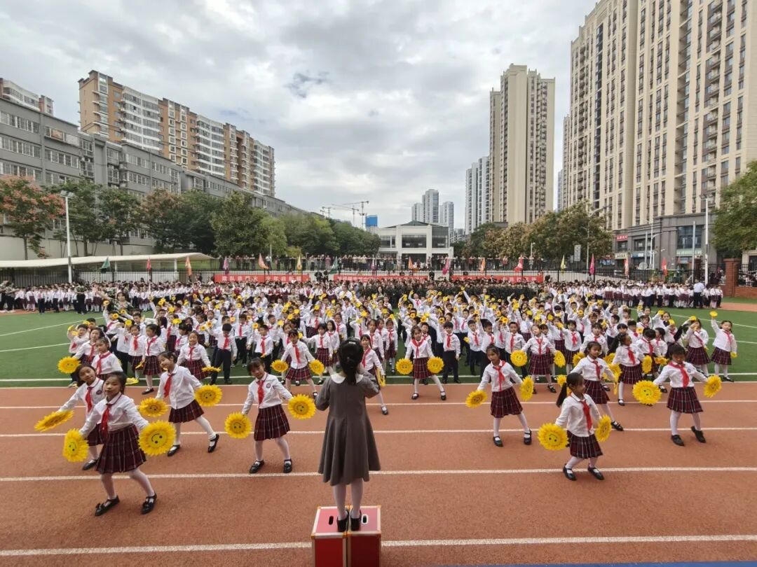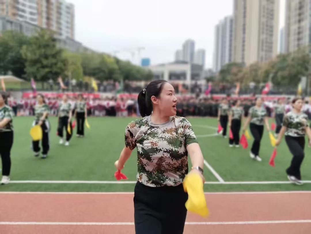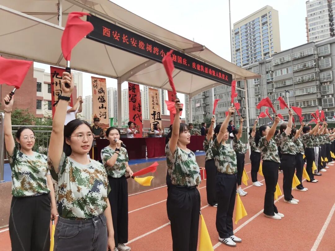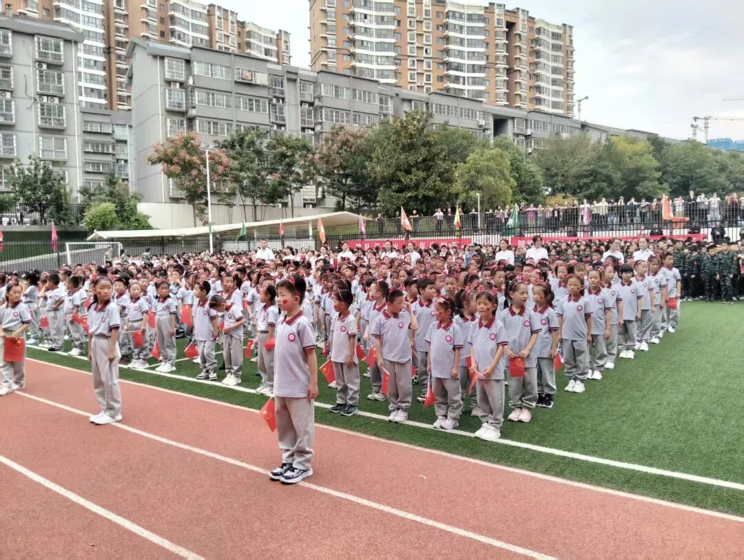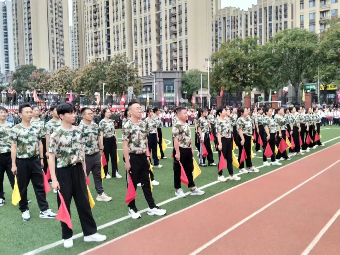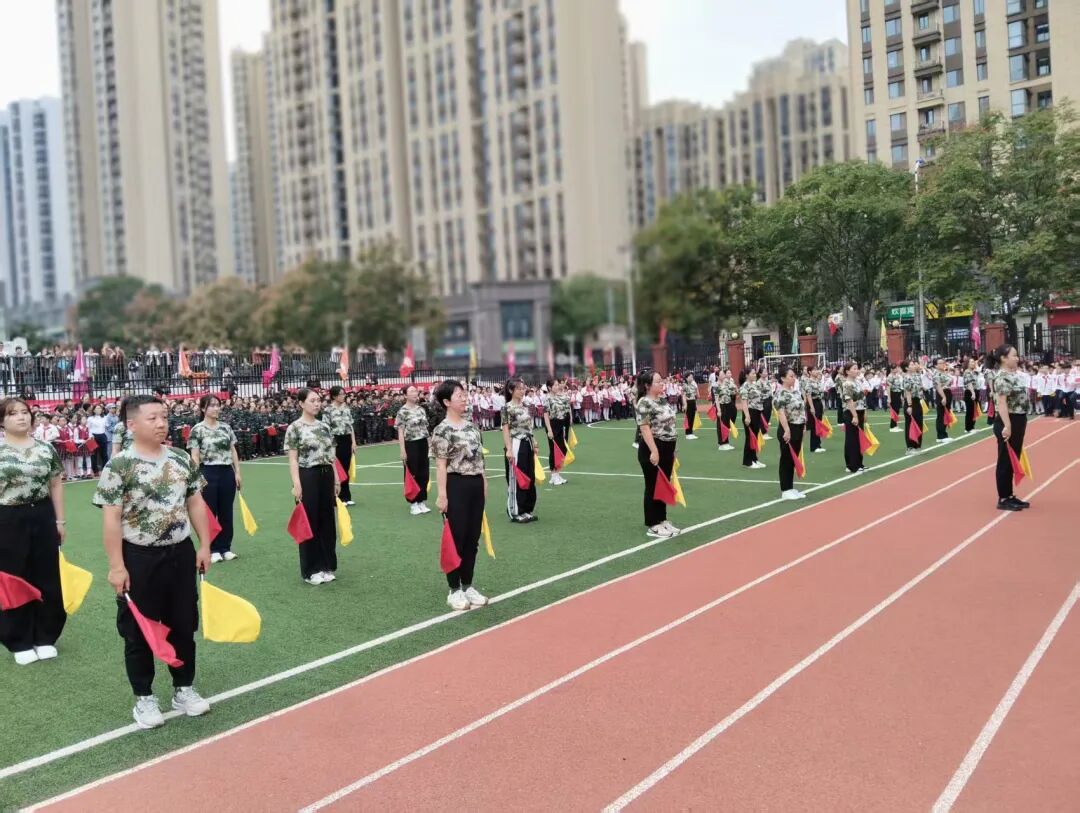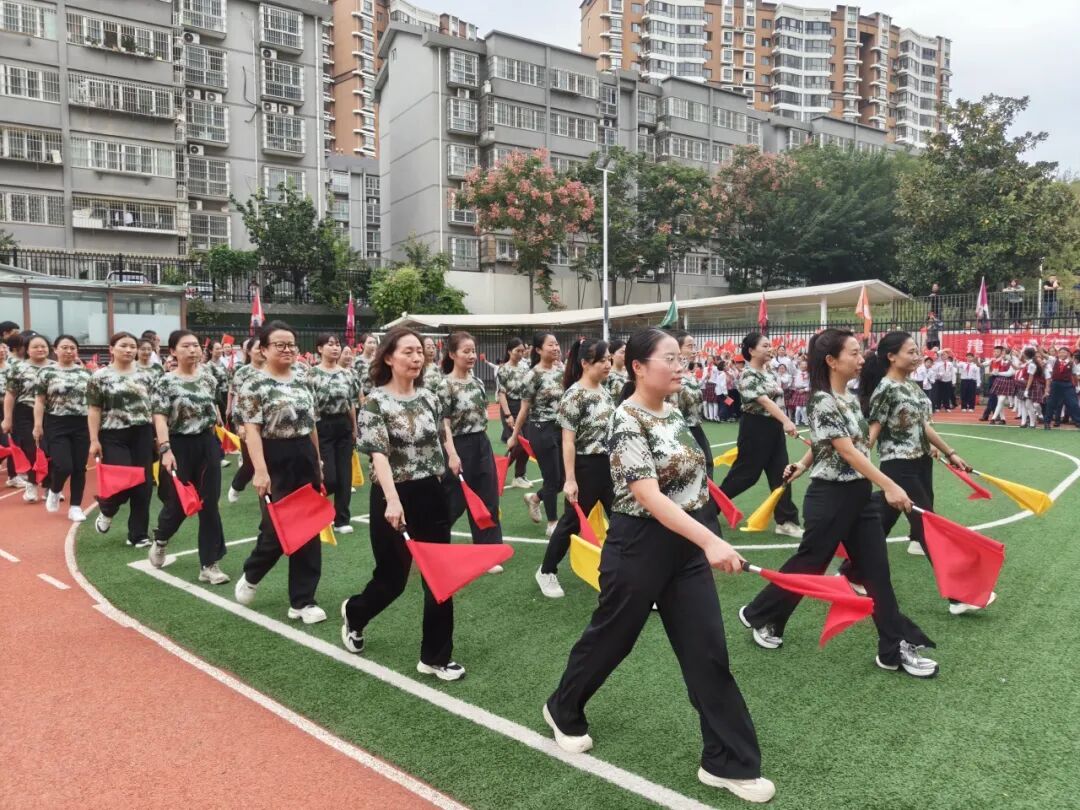 西安长安橡树湾小学教师方阵燃动国庆!规整队列展现严谨风貌,变幻旗操传递爱国情怀,师生们在欢呼声中见证师者魅力,为节日增添别样光彩。