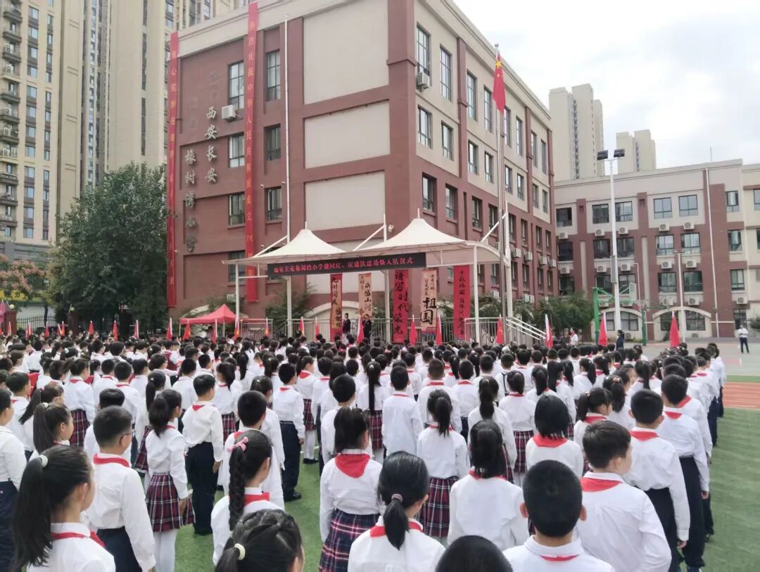 西安长安橡树湾小学国旗护卫队首次亮相,队员们身着整齐制服,昂首挺胸迈步向前。伴随着激昂的国歌,他们齐声高唱,用热血姿态展现出新时代少年的蓬勃风采。