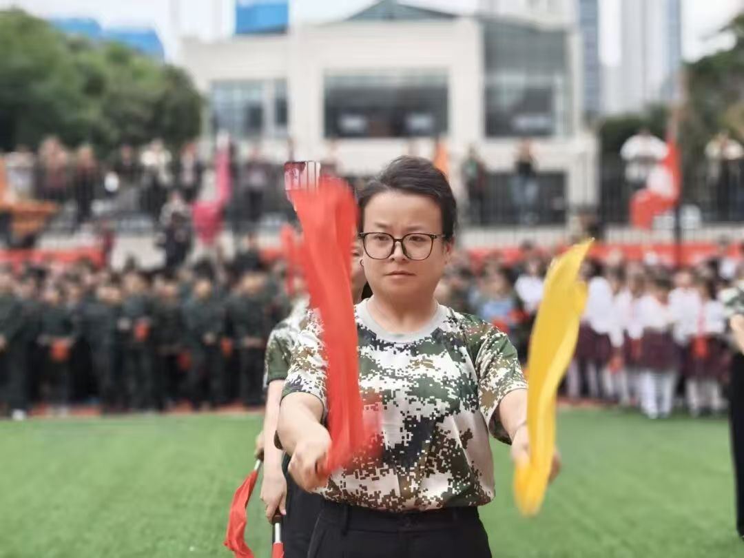 二年级学子默契十足,听指令迅速完成横队变纵队的切换。他们步伐轻稳却不乱,每一处细节都展现出日常训练的扎实功底。伴着《红红的太阳》的旋律,学子们的风采里满是成长的蜕变。