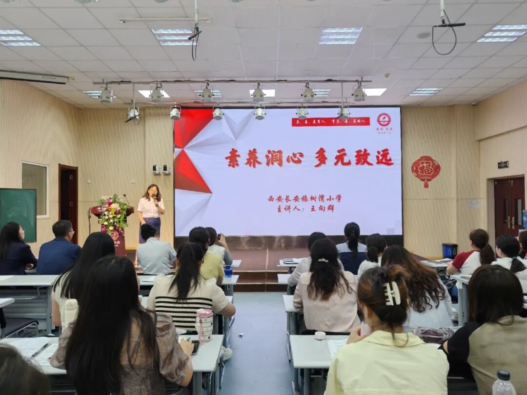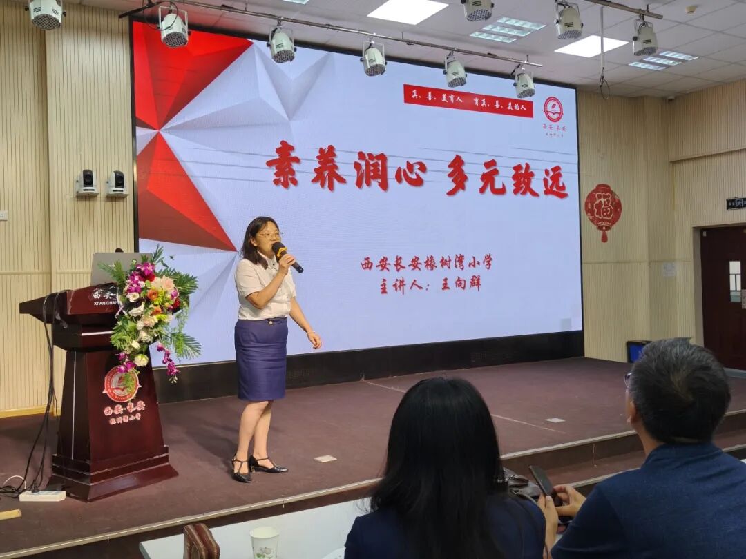 我校王副校长以《素养润心 多元致远》为题开展讲座。她结合十年素养课程建设实践,介绍学校以 “十商” 育人为根基打造的多元社团、传统文化、户外公园、博学实践、项目探索五大素养课程板块,分享“长安拾遗”等项目式学习的实践案例,阐述多维度课程如何为学生全面发展赋能,支撑学生核心素养落地。