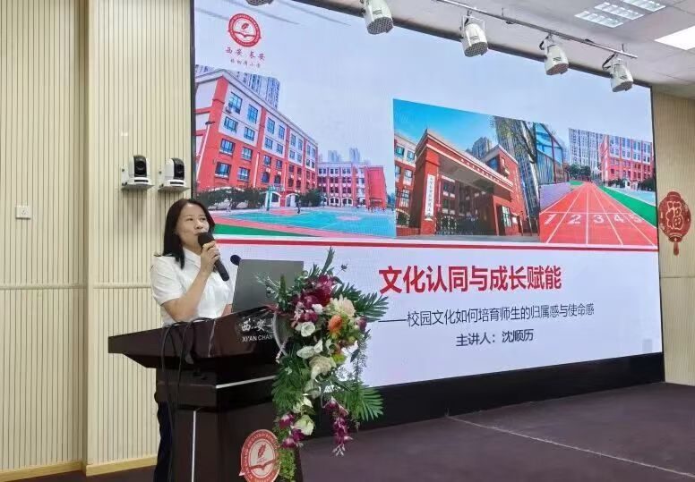 活动伊始,我校沈校长以《文化认同与成长赋能:校园文化如何培育师生的归属感与使命感》为题,结合橡树湾小学 “真善美”育人,育“真善美”的人” 的办学理念,从校园文化建设的实践路径、师生归属感培育的具体方法等方面,用生动案例与深刻思考,阐述了 “文化润校” 的重要价值。