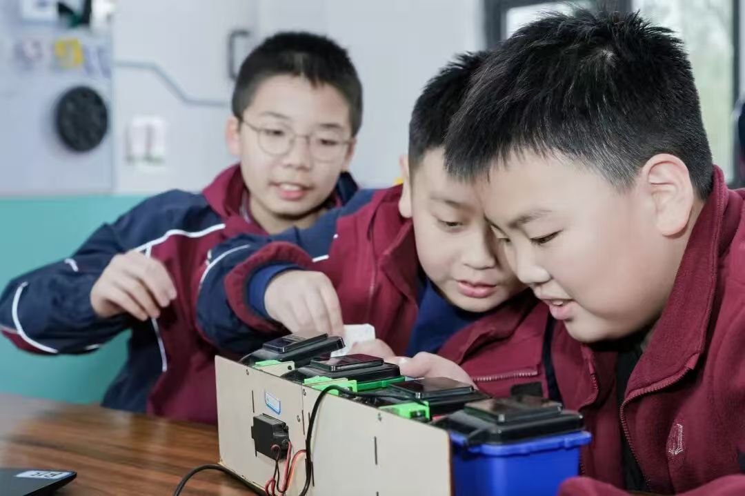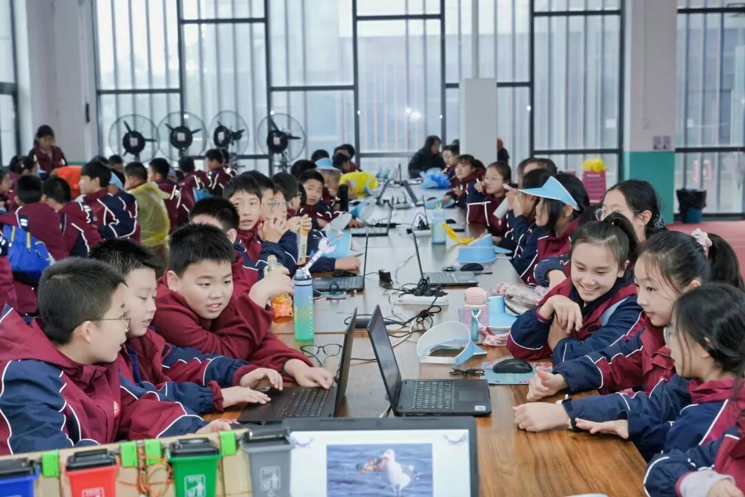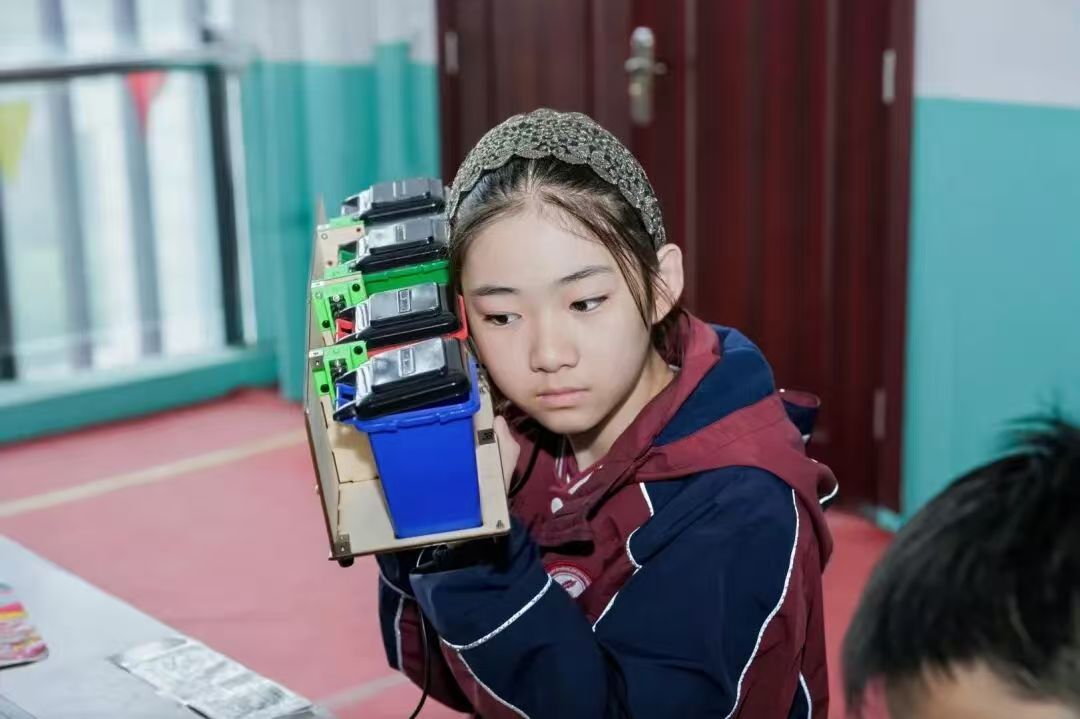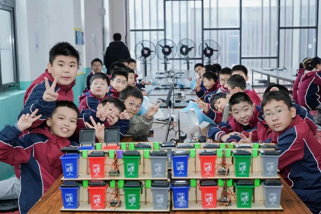 基地特别设置了AI识别垃圾桶体验装置,同学们亲手操作设备,既懂得了环保知识,更触摸到科技的实用价值。