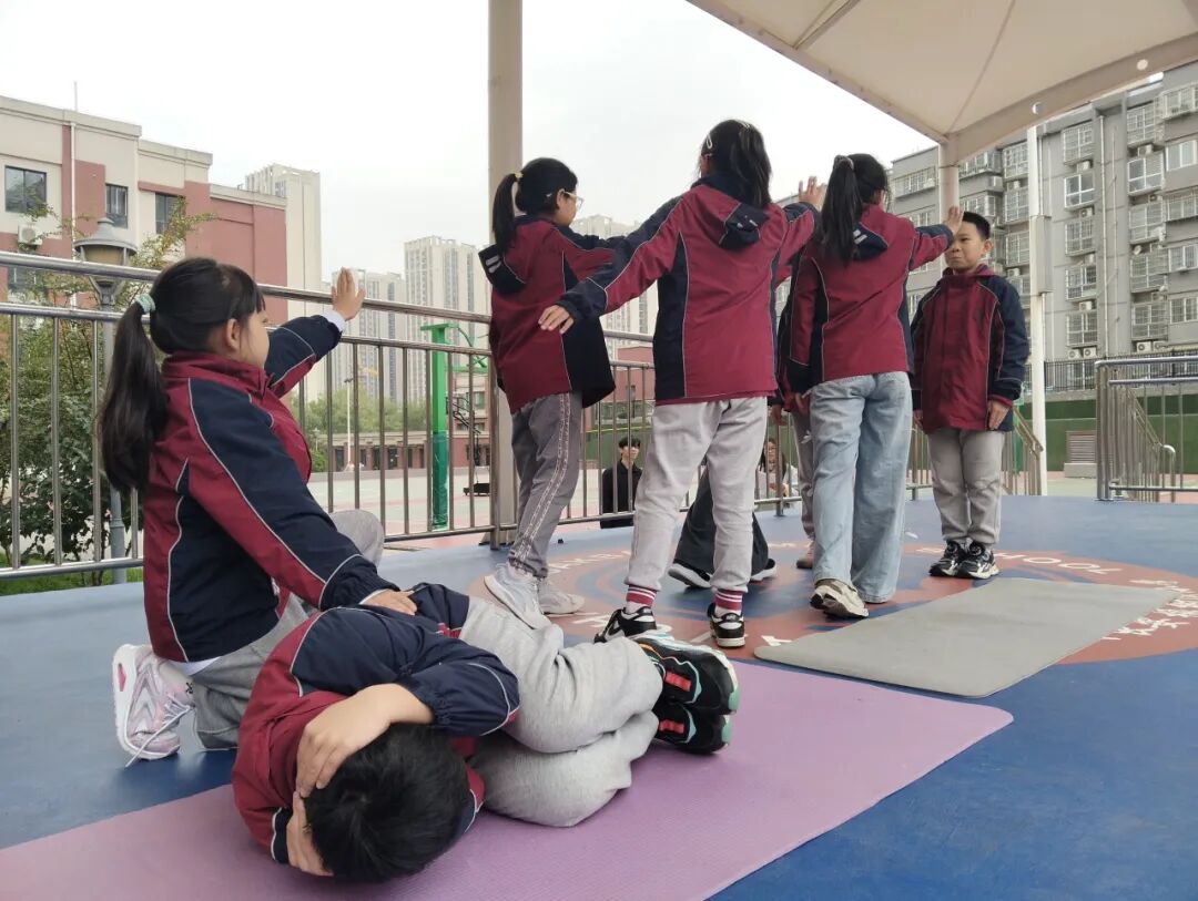 四、五年级学生代表化身安全示范员,还原踩踏事故场景,展示拥挤情况下和摔倒时的自护自救方法,生动诠释了“遇险稳心态,防护有方法”的安全准则。