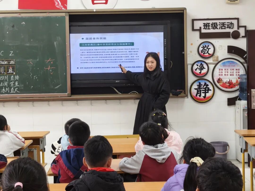 演练前,班主任老师通过趣味问答、案例分析等形式,向学生科普踩踏事故的危害,孩子们踊跃参与互动,纷纷表示要做安全小标兵,为演练做好知识储备。