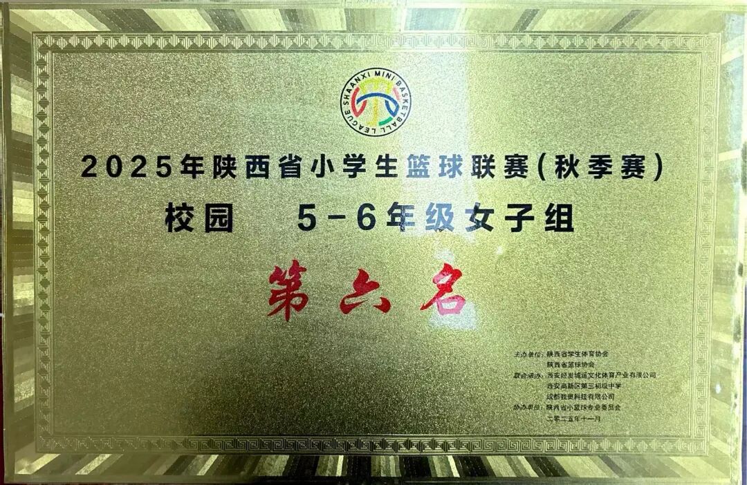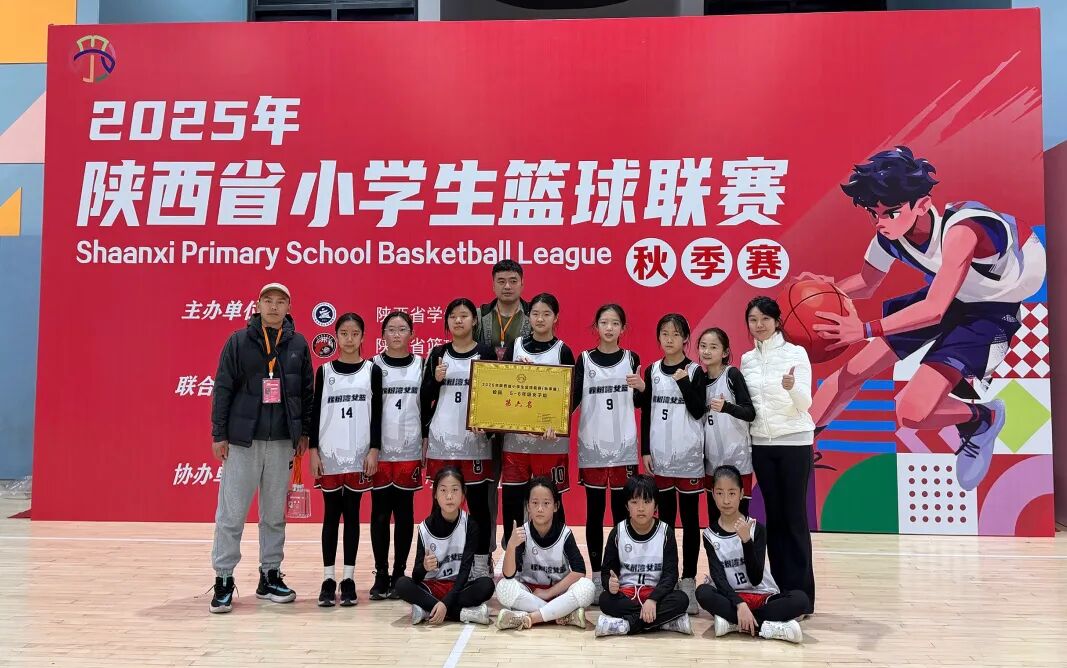 在2025年陕西省小学生篮球联赛的激烈角逐中,我校女子篮球队凭借顽强斗志和精湛球技,一路过关斩将,最终取得5—6年级女子组第六名的成绩,在全省赛场上展现出少年蓬勃向上的体育风采。