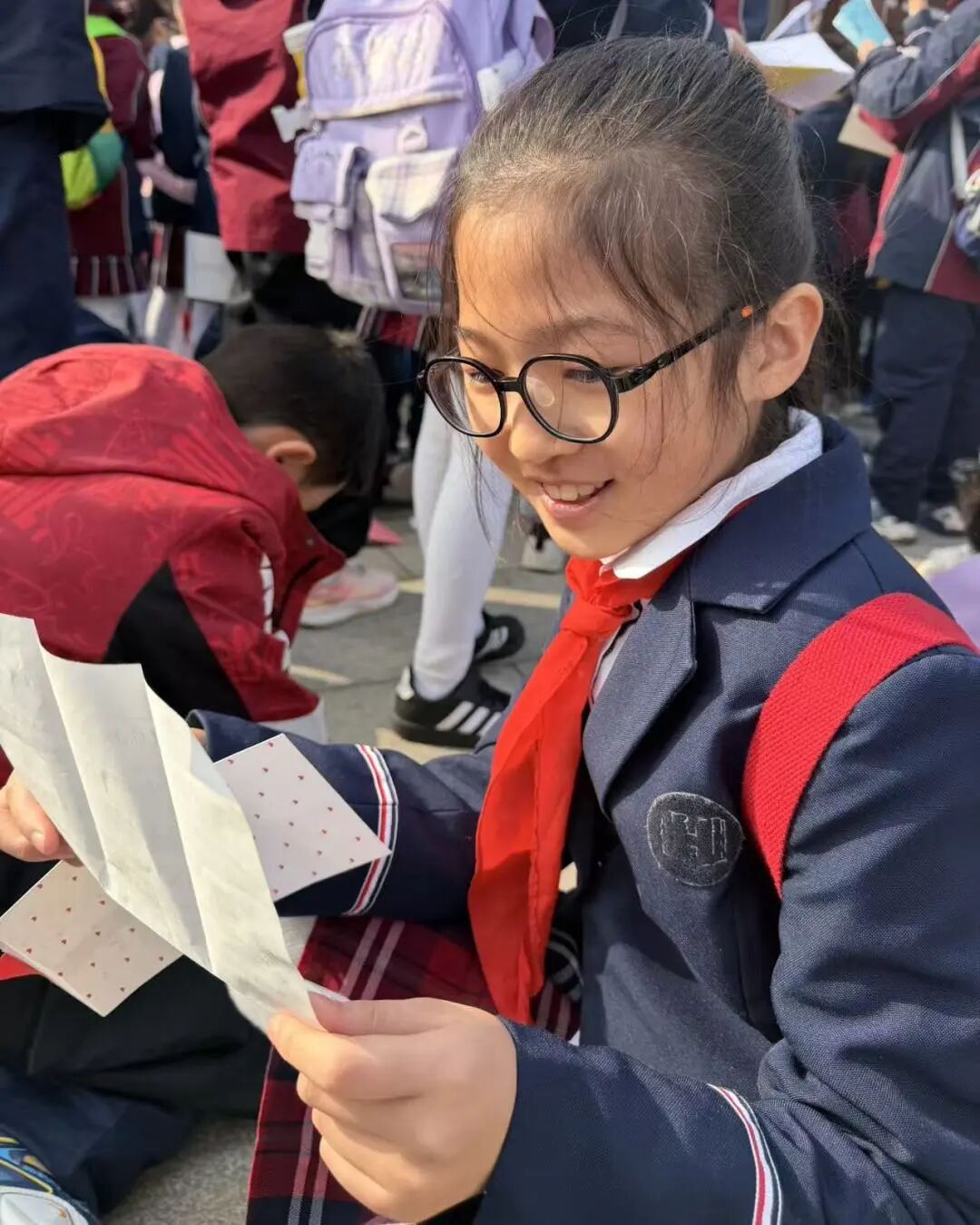 孩子们站上舞台,大声说出对自己的期许。接着小心翼翼拆开家长写来的信物,信纸里藏着叮嘱与爱意,这是成长礼最温暖的时刻。