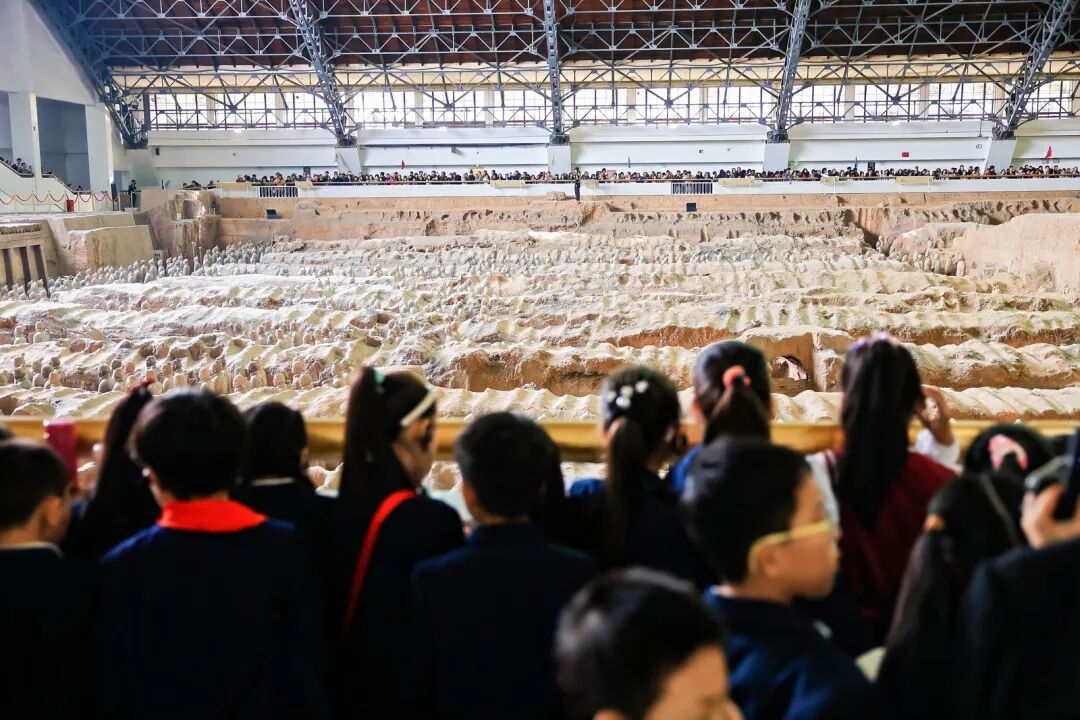 走进秦始皇兵马俑博物馆,看到一号坑“地下军团”,同学们不约而同发出阵阵惊叹,眼中满是对古人巧思的震撼。