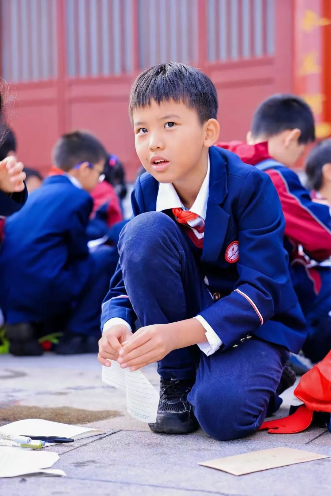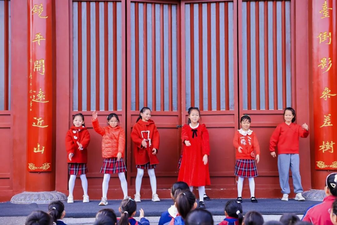 《生日祝福歌》的旋律从舞台传来,同学们坐在庭院,跟着节奏认真做起许愿专属手势。清亮的歌声裹着童真,在青砖黛瓦间轻轻回荡,每一个动作、每一句吟唱,都藏着对十岁的期待。