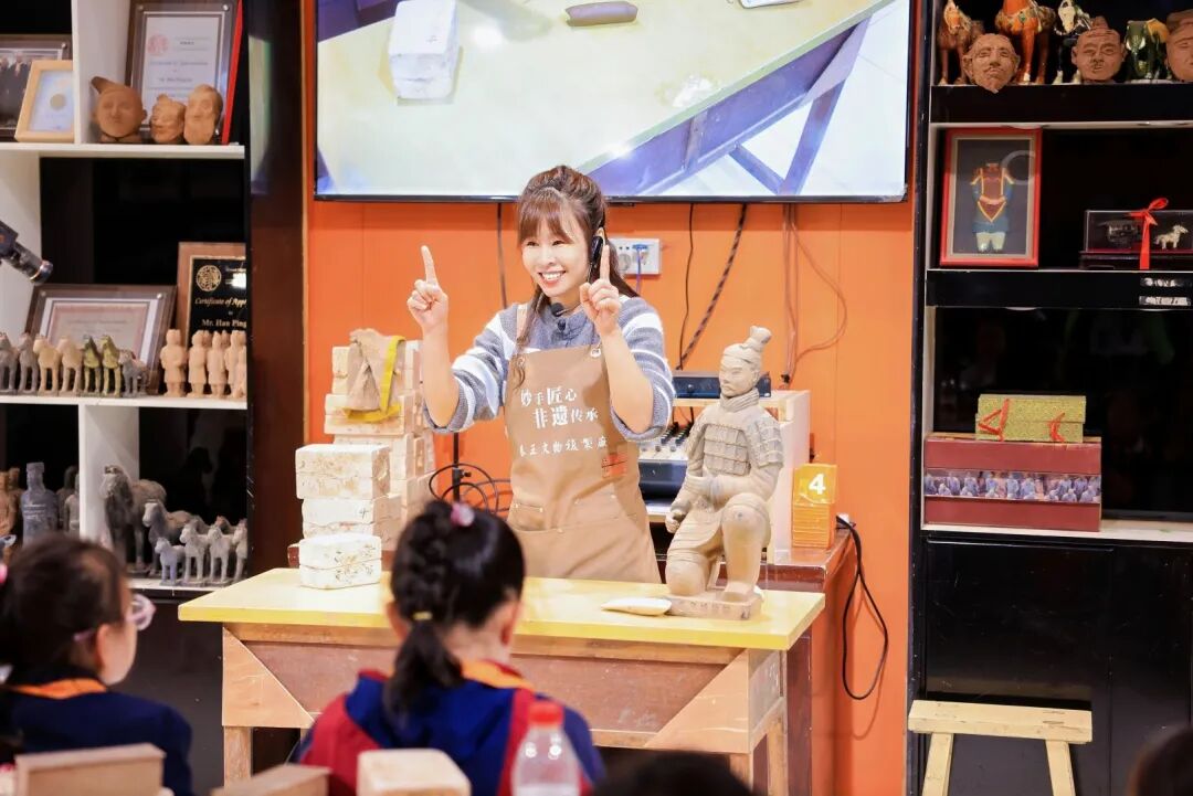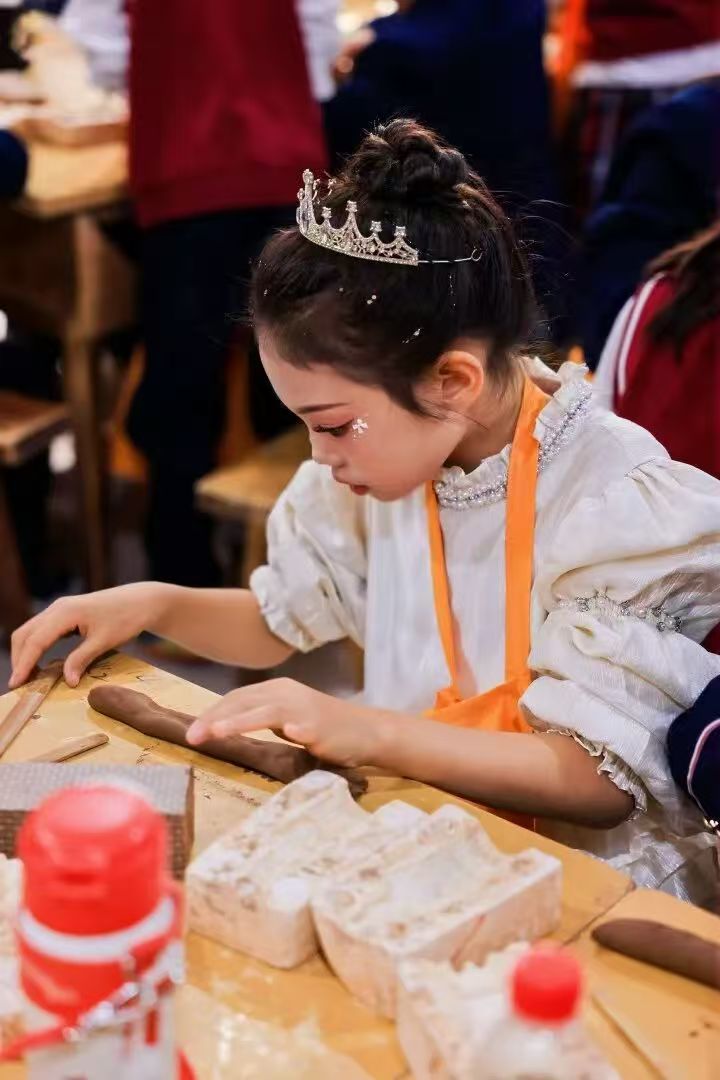 通过专业老师讲解,同学们亲手用模具制作泥塑兵马俑,触摸着与千年陶俑相似的线条,仿佛和秦代工匠完成了一场关于匠心的默契对话。