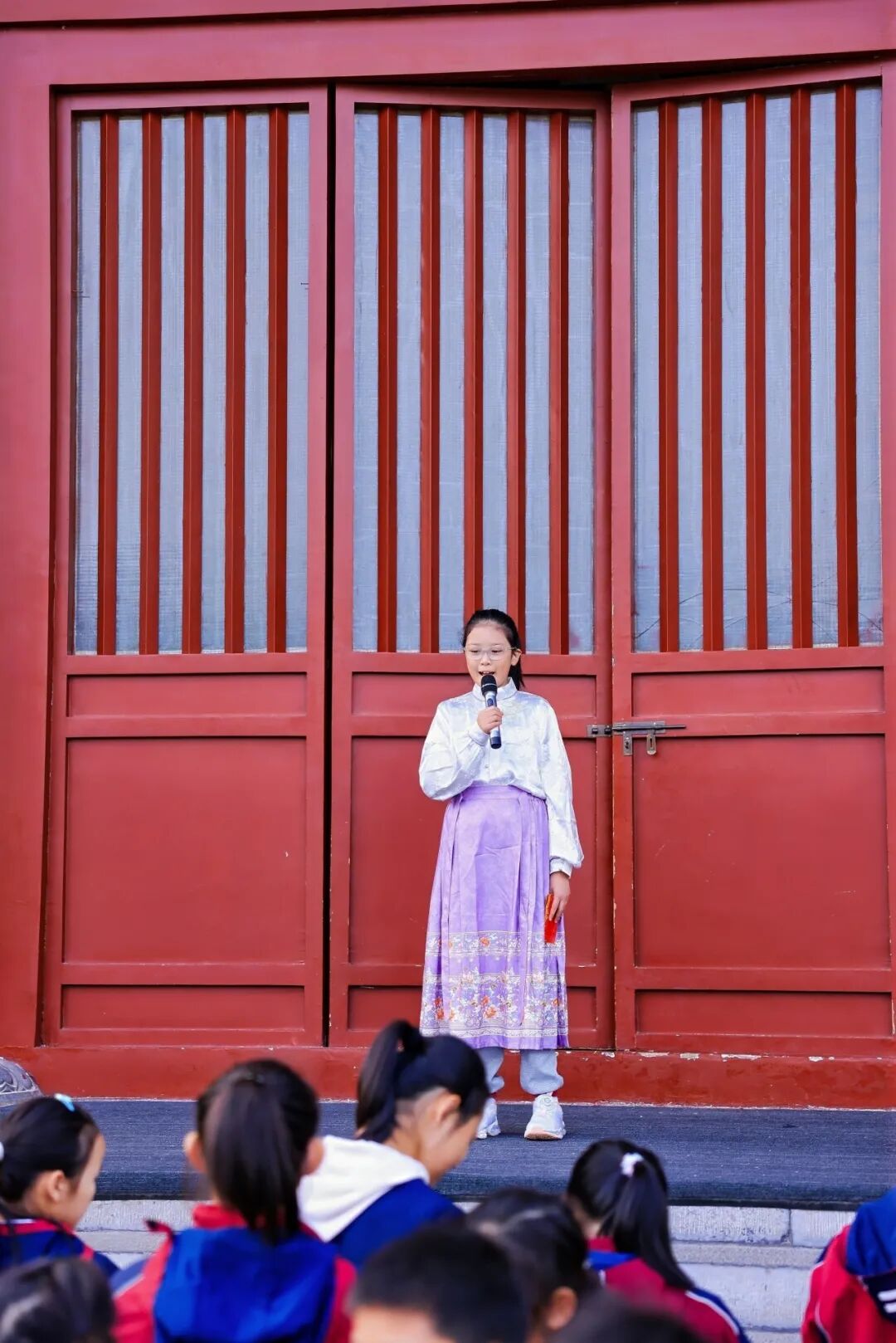 师生齐诵《十岁的翅膀》,“十岁的翅膀,载着星光与向往” 的诗句轻轻落进庭院,字里行间满是对时光的珍惜、对未来的向往。