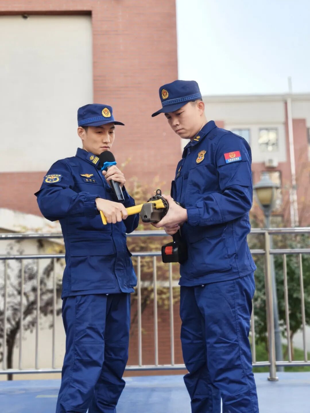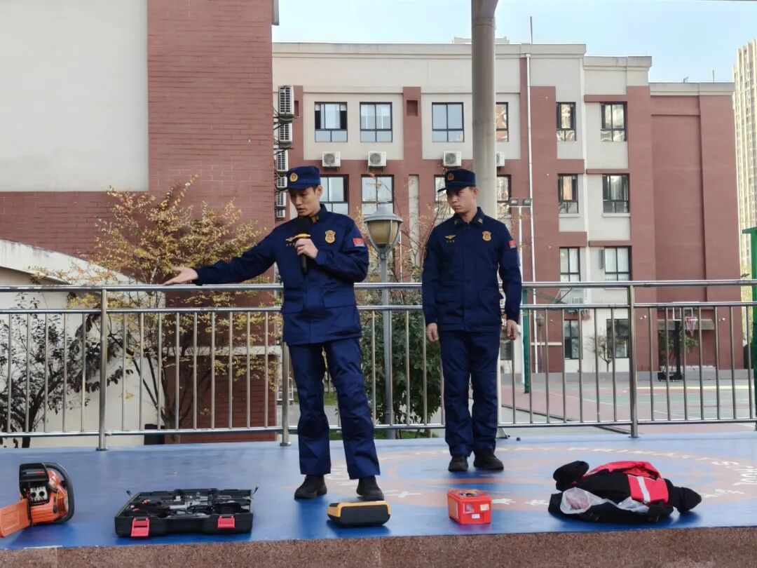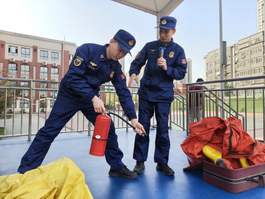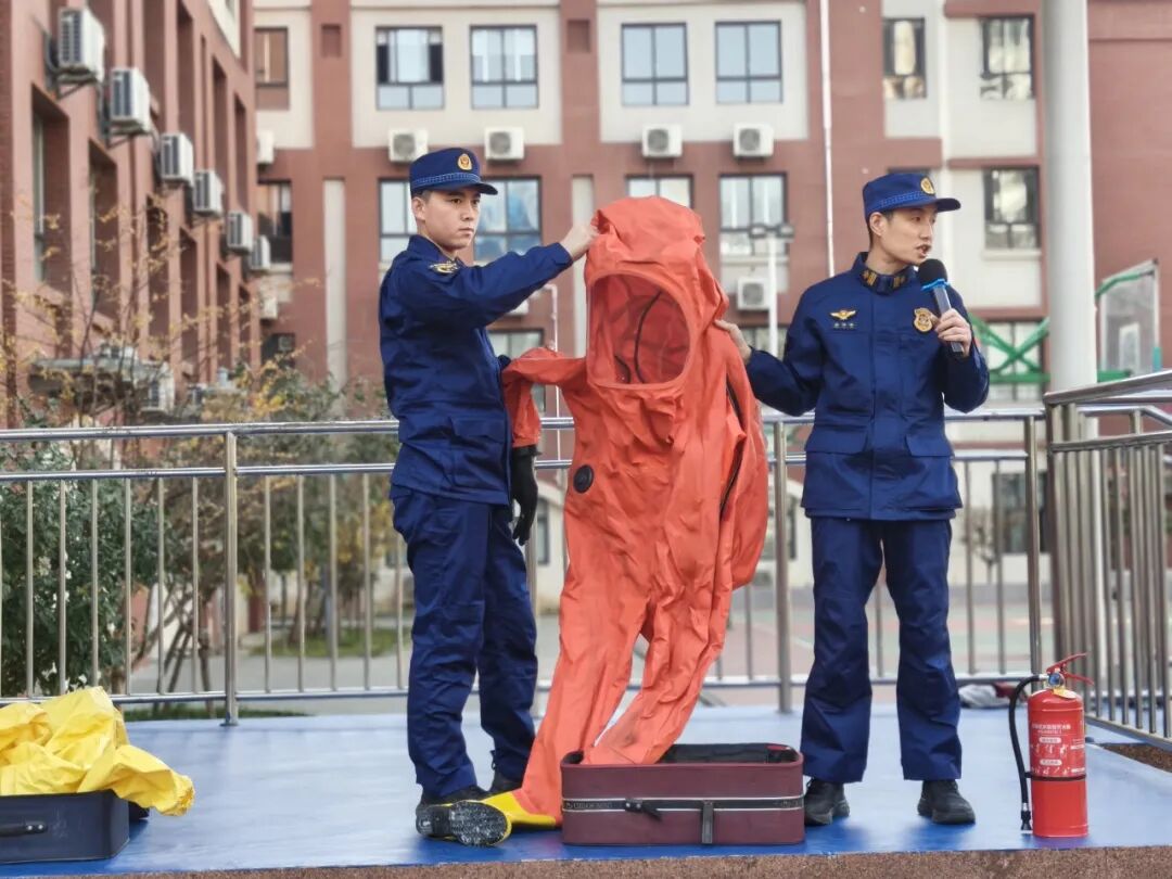 学校邀请长安区消防救援大队消防员,为同学们带来一场生动有趣的消防安全课堂,向学生展示各种消防器材的使用方法,在互动环节中学生通过穿救生衣、系安全绳、用灭火器等亲身体验,将理论知识转化为实战能力。