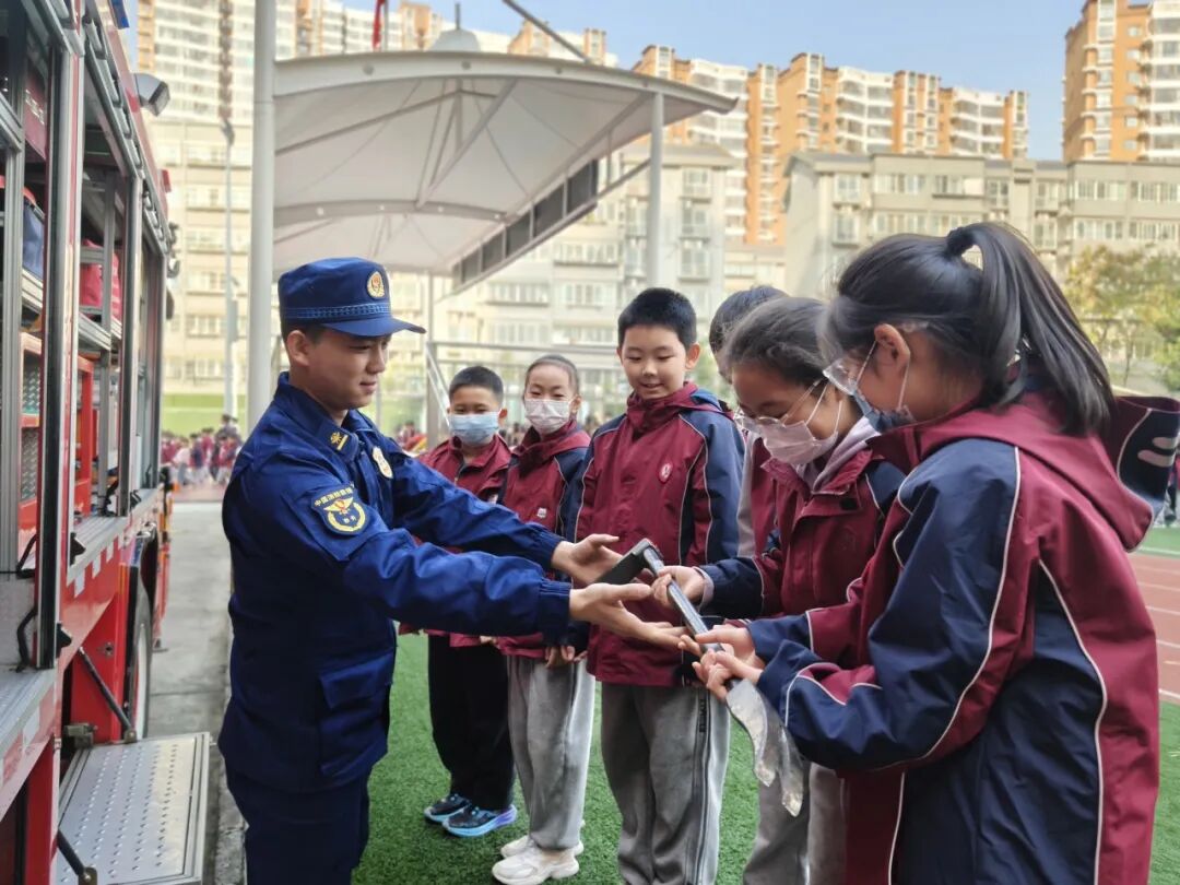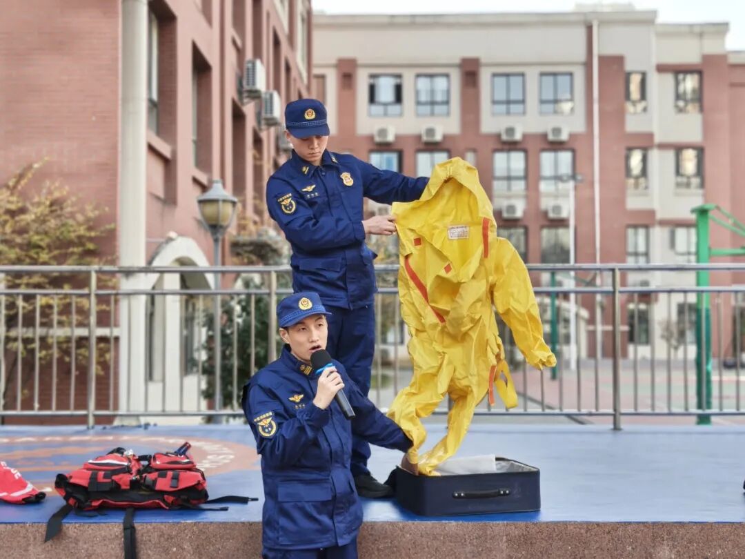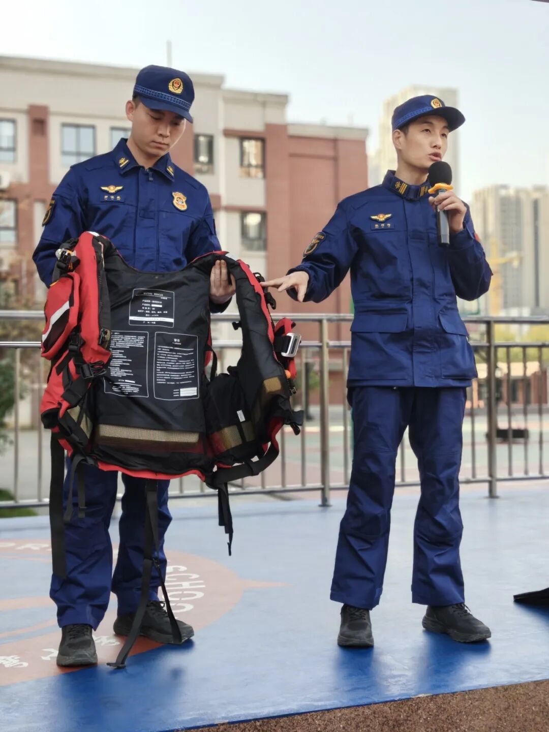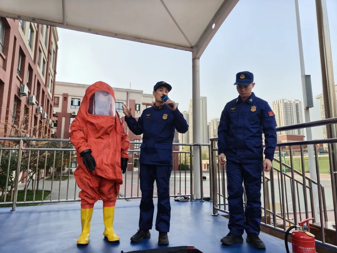 学校邀请长安区消防救援大队消防员,为同学们带来一场生动有趣的消防安全课堂,向学生展示各种消防器材的使用方法,在互动环节中学生通过穿救生衣、系安全绳、用灭火器等亲身体验,将理论知识转化为实战能力。