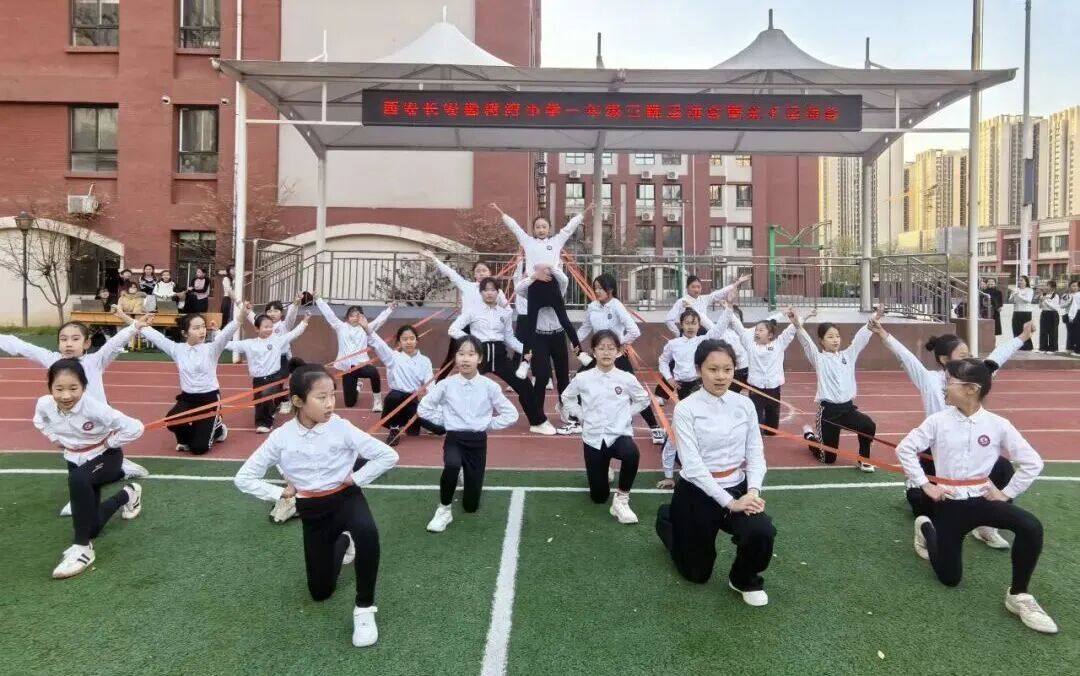 长绳 “呼呼” 摇起,大手拉小手,合着节拍一跃而过,绳影如彩虹划过,笑声在队伍间声声飞扬。