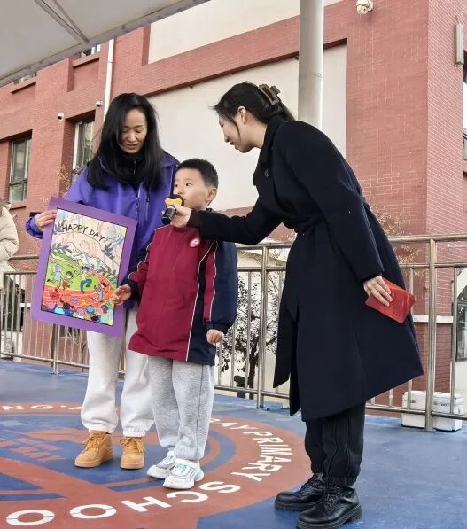 家长代表深情朗诵《写给未来的你们》,字里行间都是对孩子的期许与祝福。亲子携手现场创作主题画作,色彩和创意在纸上“起舞”,笔触里满是暖意与温情。