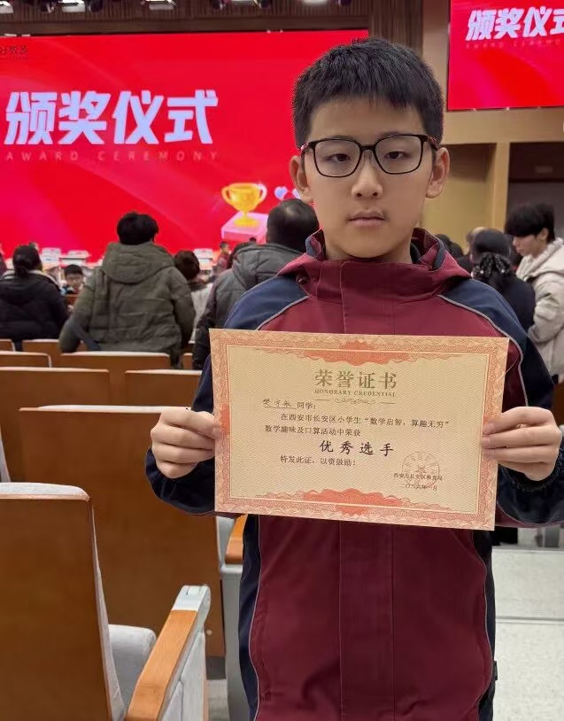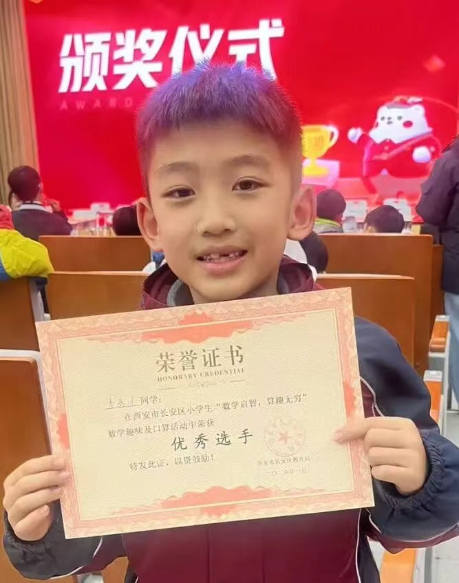 一张张亮眼的成绩单,是孩子们平日勤学苦练的最好见证;一次次飞速的演算落笔,是数学思维在指尖的精彩绽放。此次获奖,不仅为学校增添了光彩,更激发了同学们探索数学奥秘、享受运算乐趣的热情,让“爱数学、学数学、用数学”的种子在校园里生根发芽。