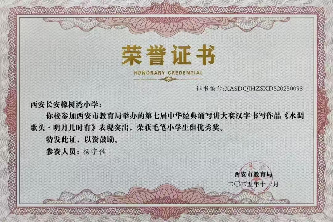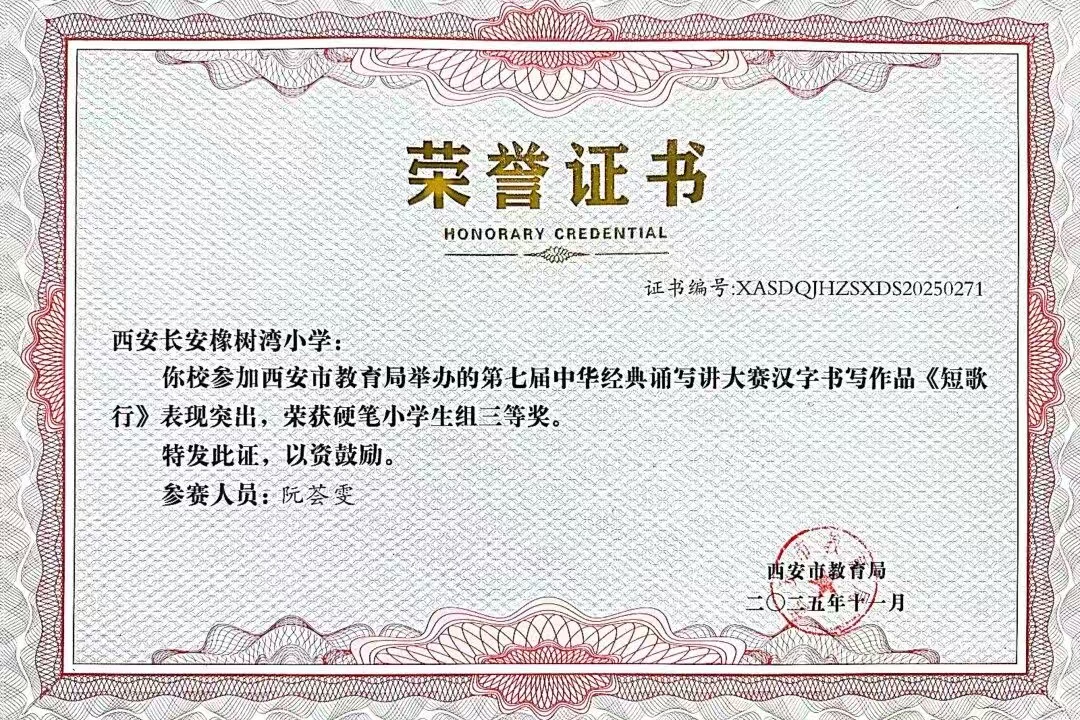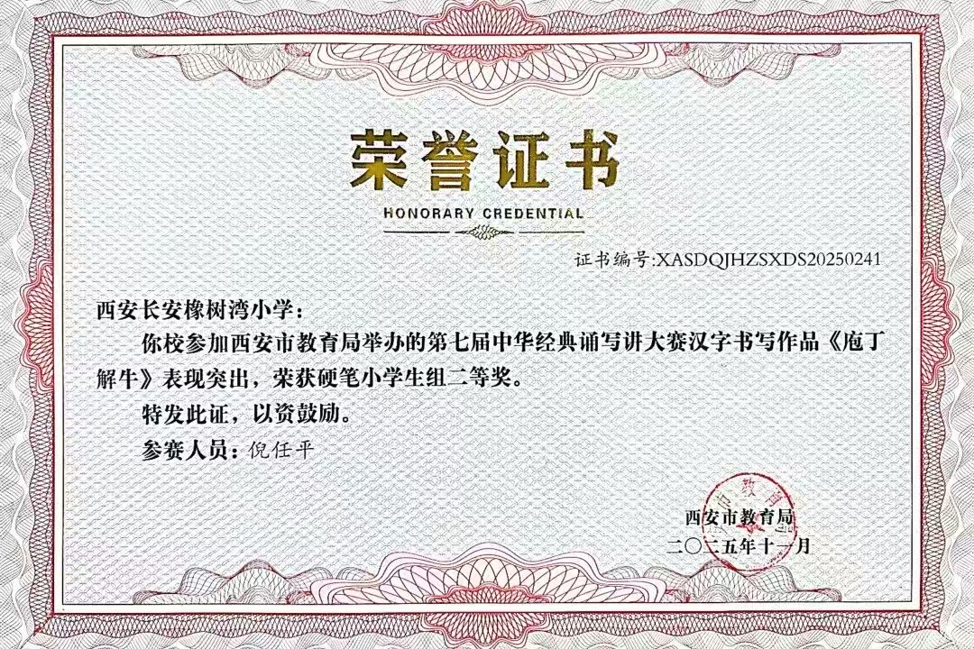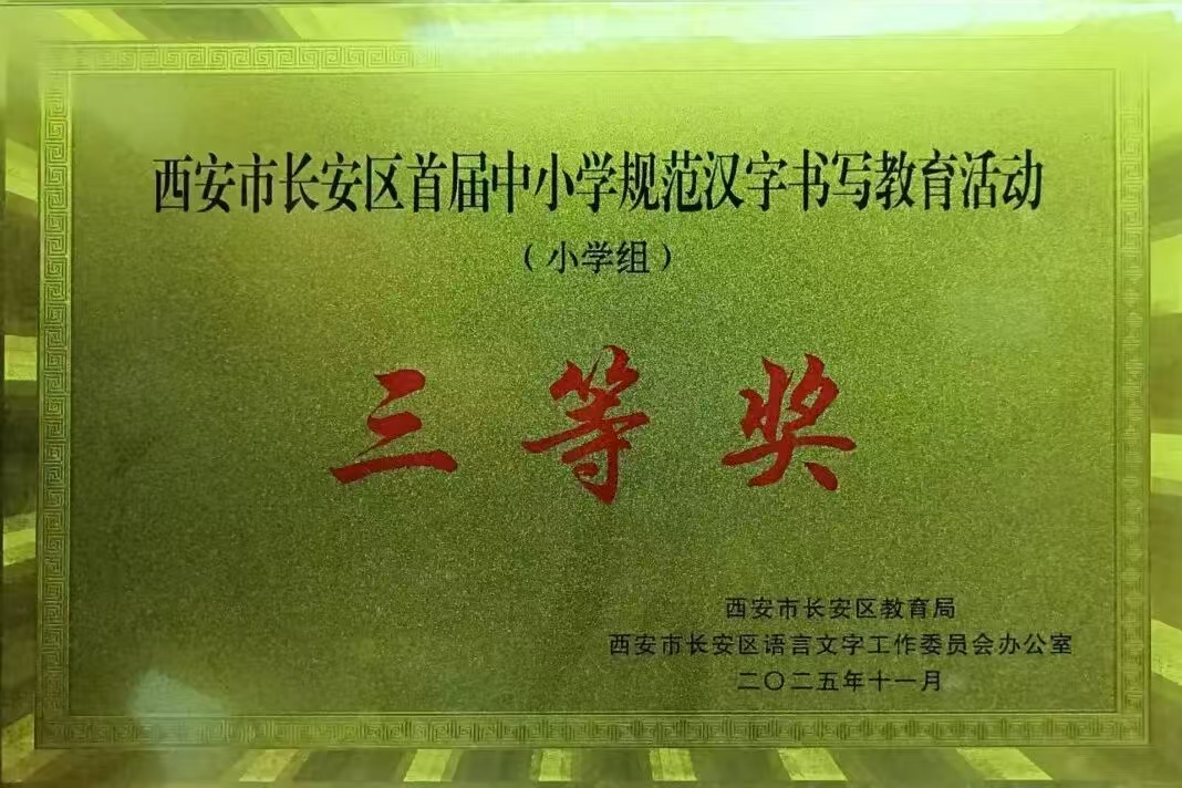 在西安市长安区首届中小学规范汉字书写教育活动中,我校师生凝心聚力,凭借汉字书写教育的扎实基本功,喜获小学组三等奖。