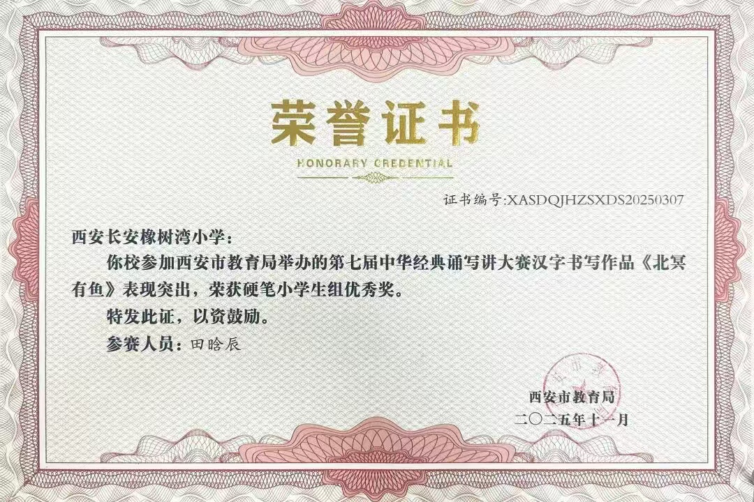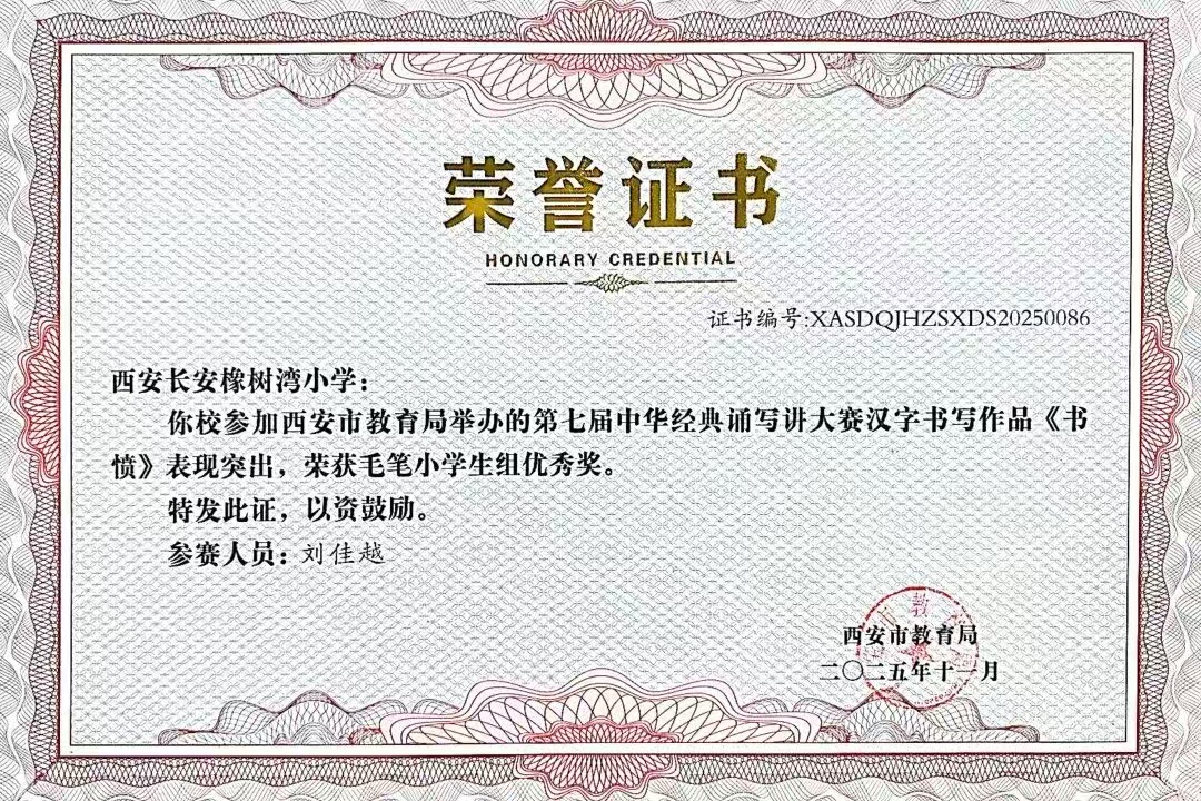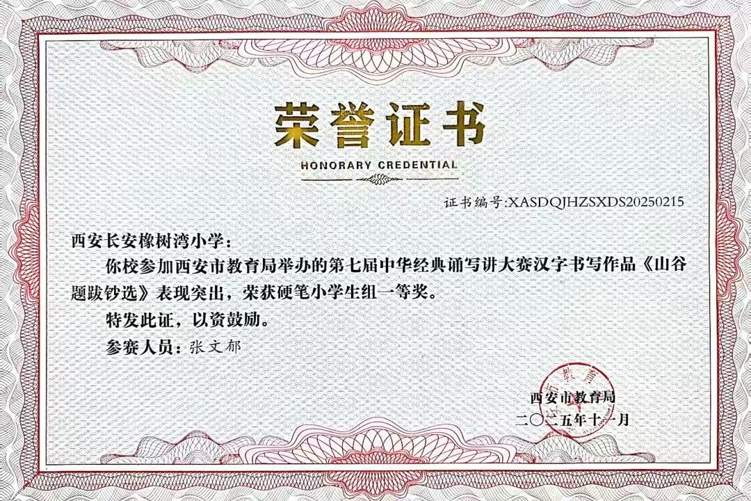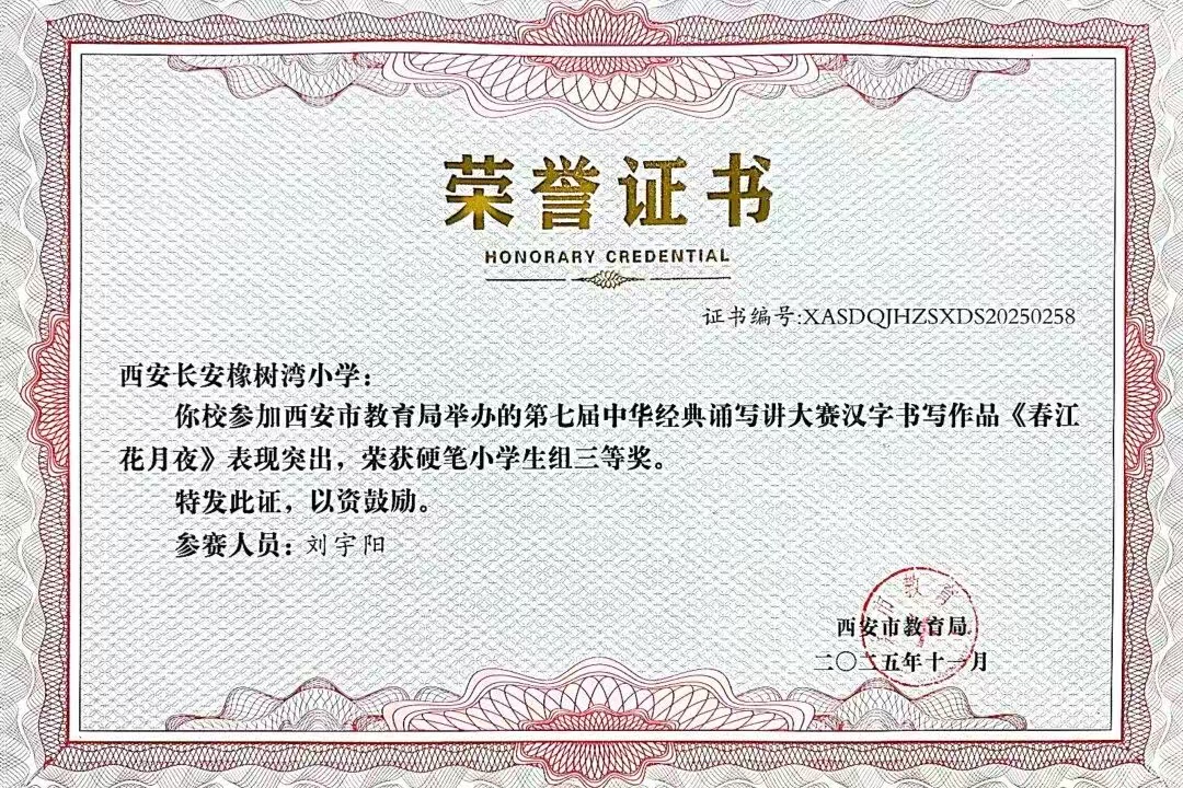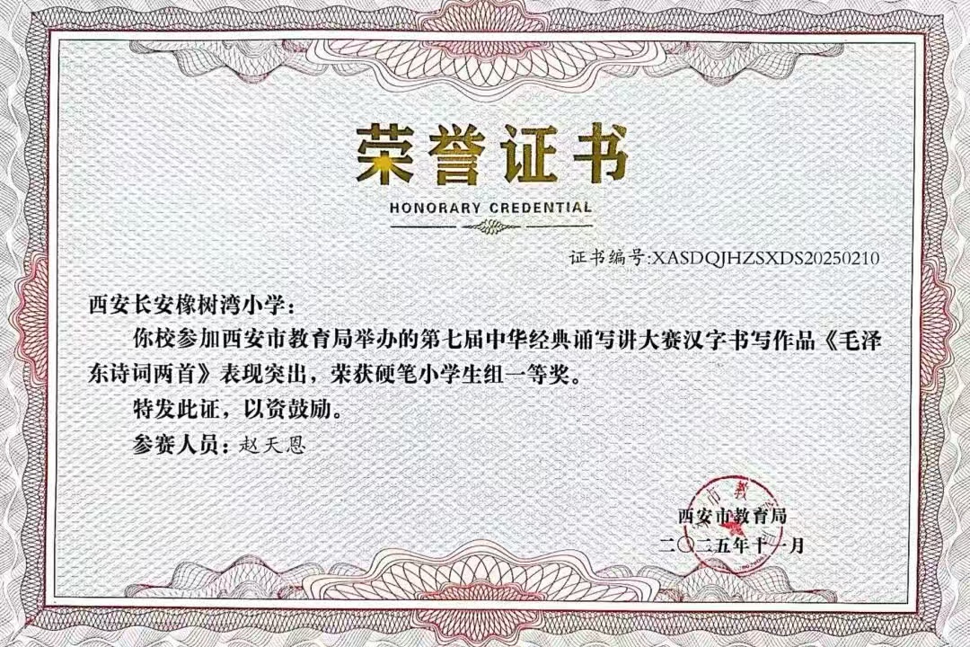 在西安市长安区首届中小学规范汉字书写教育活动中,我校师生凝心聚力,凭借汉字书写教育的扎实基本功,喜获小学组三等奖。