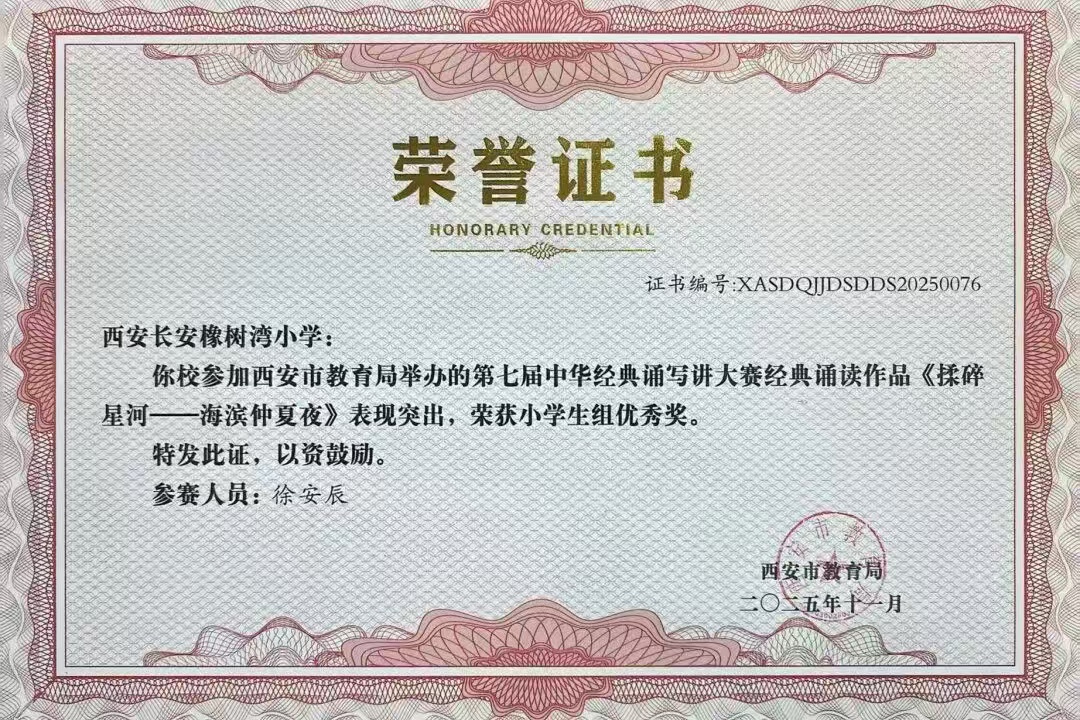 西安长安橡树湾小学深耕师生能力提升与品格塑造,致力于培养全面发展的新时代少年。近期,在多项赛事与评选活动中,我校师生锐意进取、勇攀高峰,捷报频传,充分彰显了全校师生卓越的综合素养与奋发有为的精神风貌。
