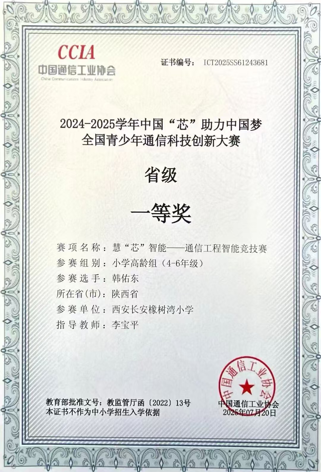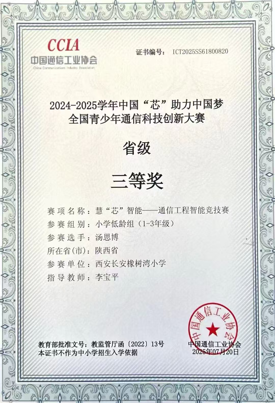 在2024-2025学年中国“芯”助力中国梦全国青少年童心科技创新大赛中,我校学子韩佑东、苏木清、成明哲、汤思博沉着应战、发挥出色,在激烈角逐中脱颖而出,分别取得一、二、三等奖佳绩,尽显少年科创风采。