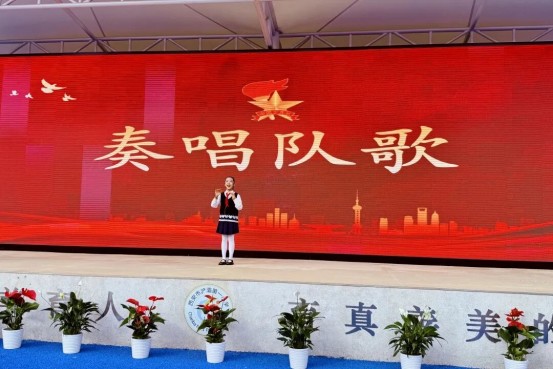团市委书记、市少工委主任徐辉向全体少先队员提出了三点希望,一要传承红色基因,做听党话、跟党走的“红孩子”;二要传承中华文脉,坚定做中国人的志气、骨气和底气;三要传承奋斗精神,立志做全面发展的时代小先锋。