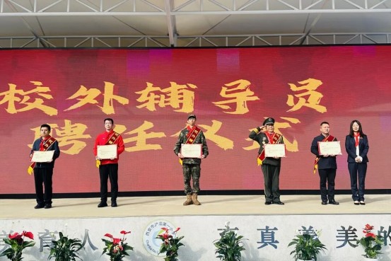 校长为受聘的校外辅导员颁发聘书,各行业佼佼者为一小汇聚新的力量,为少先队注入更多智慧与激情。