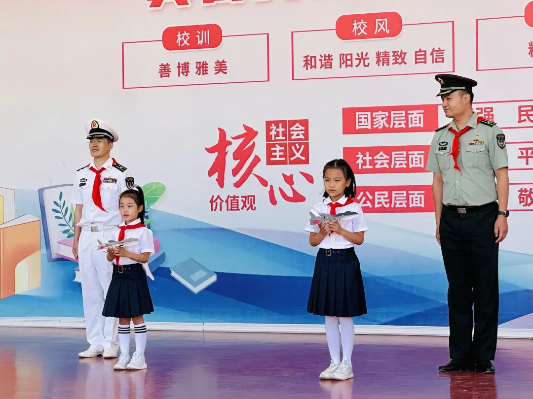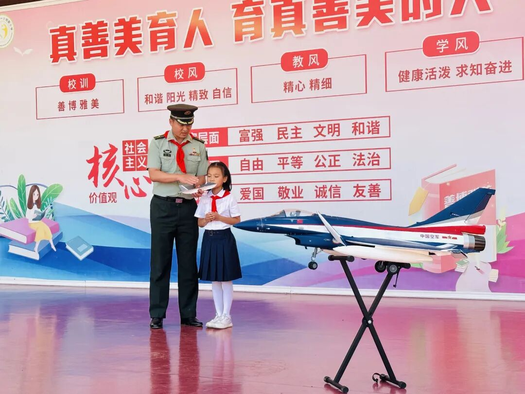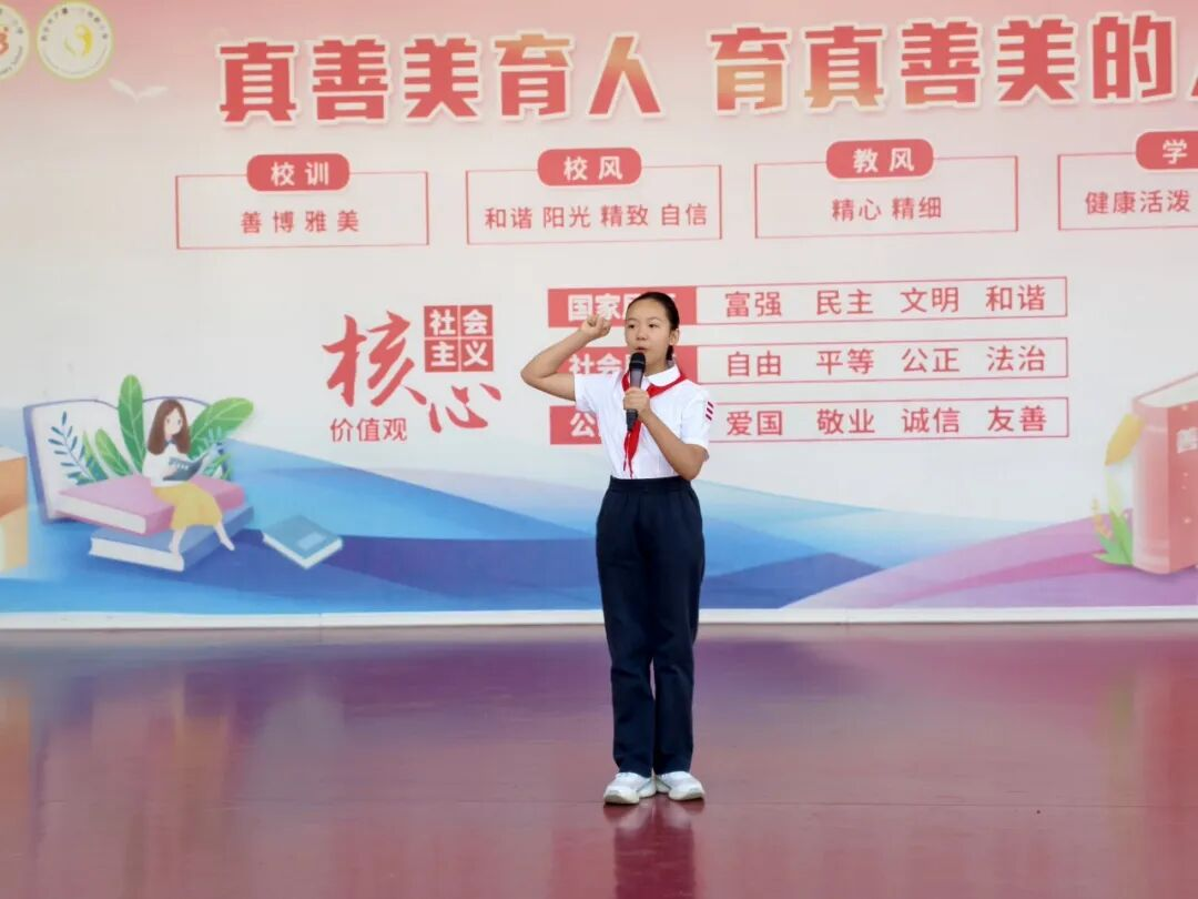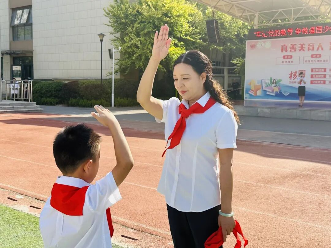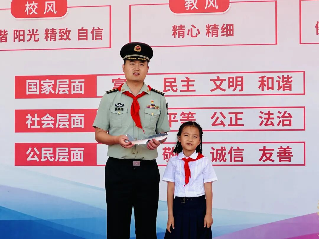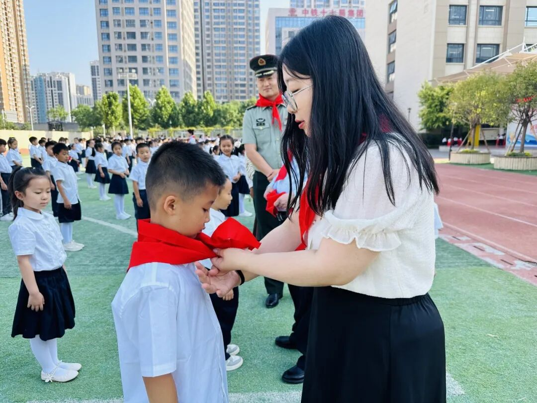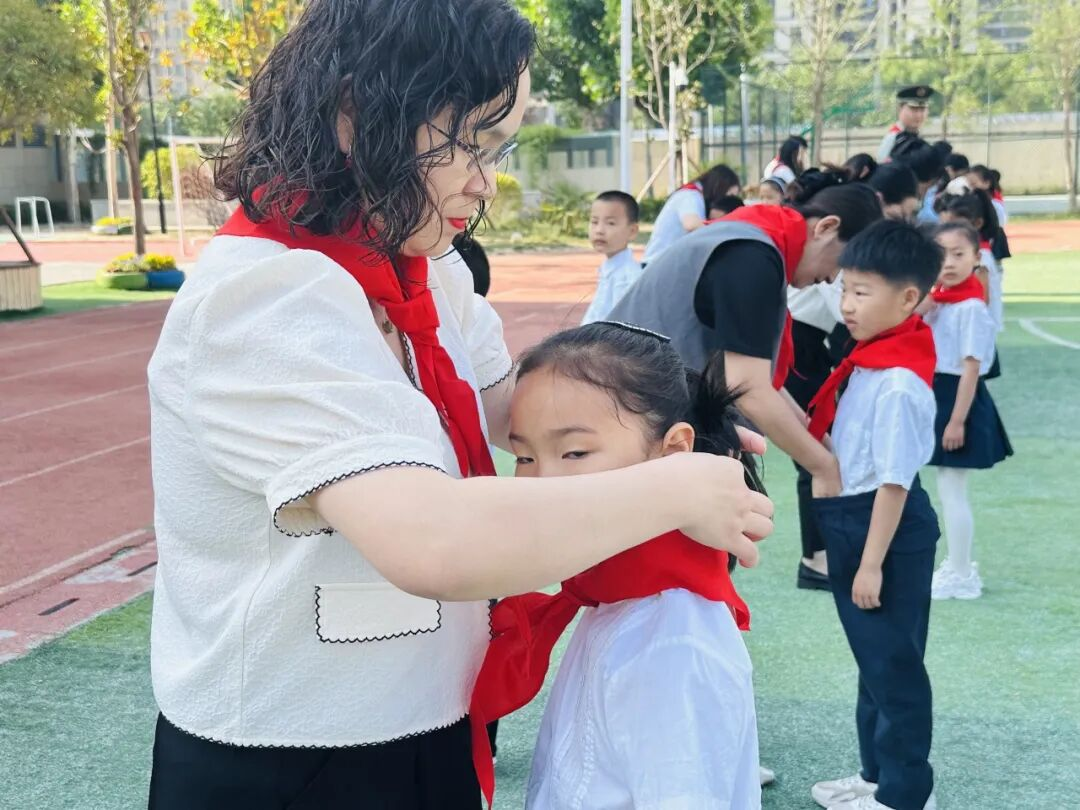 新队员代表吕昊洋以稚嫩童声道出佩戴红领巾的光荣与责任,真挚感谢师长教导,铭记先烈精神传承,郑重承诺将以实际行动践行少先队员使命,为红领巾增添新时代的光彩。