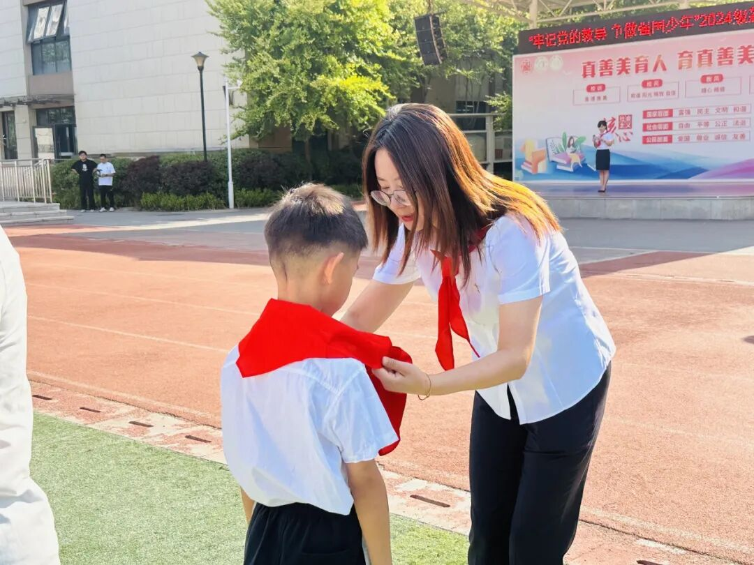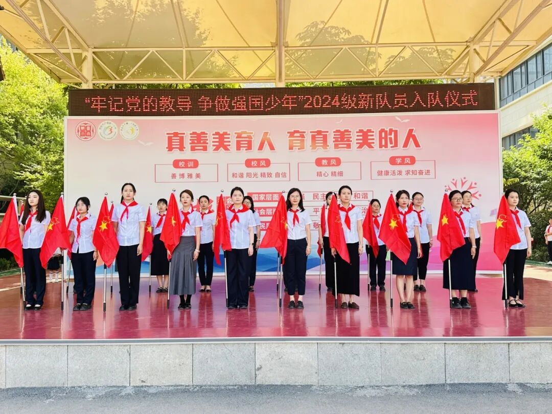 为加强青少年爱国主义教育,厚植爱国情怀,为少年扣好人生第一粒扣子,在六一儿童节来临之际,我校特开展“牢记党的教导 争做强国少年”2024级新队员入队仪式,为少先队组织注入新鲜血液,继承和发扬中国少年先锋队的优良传统,做合格的社会主义建设者和接班人。踏上牵手红领巾的旅程,争做星星火炬下耀眼的逐梦人。