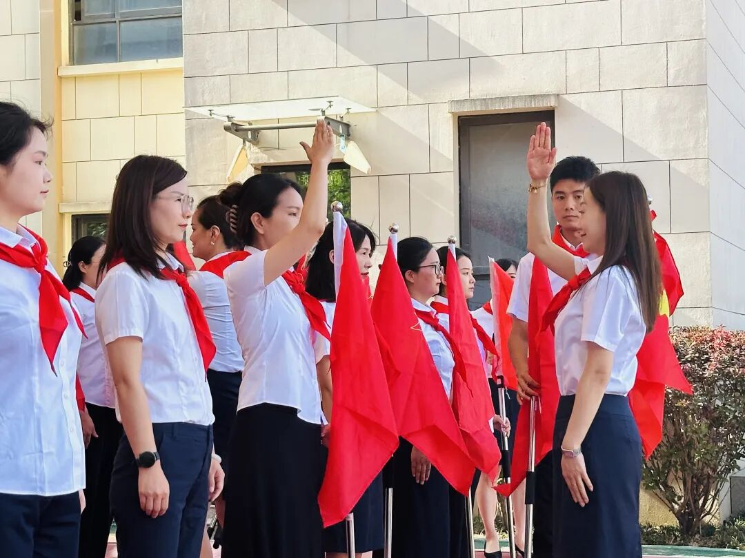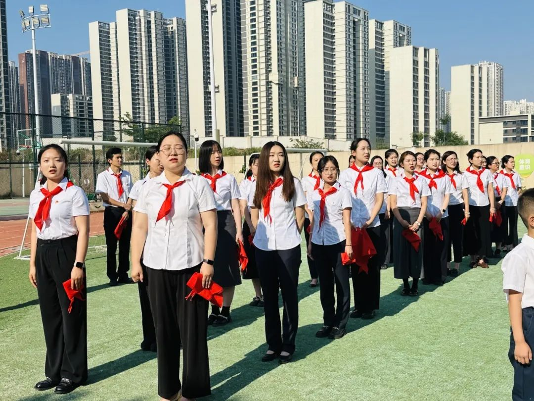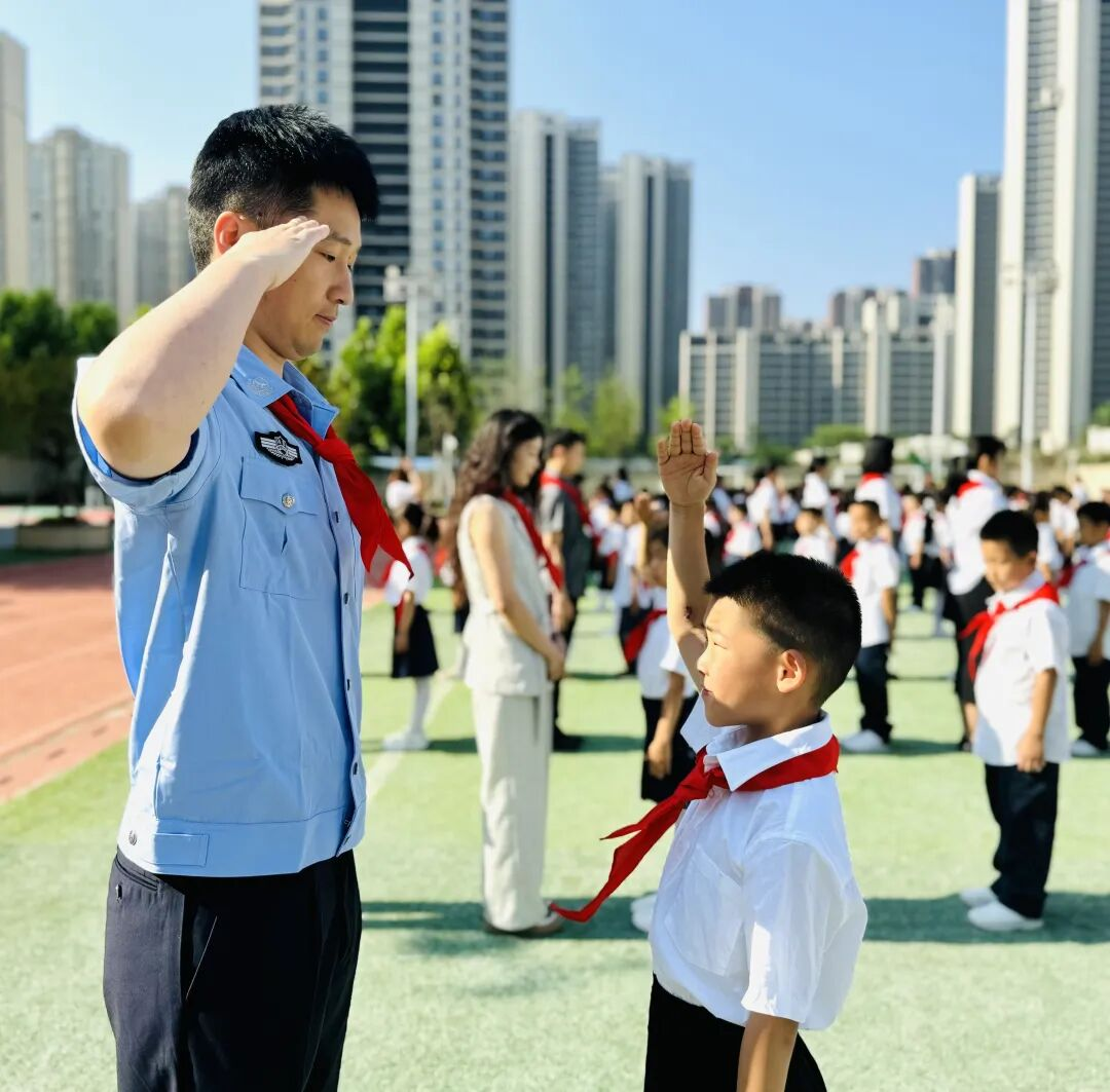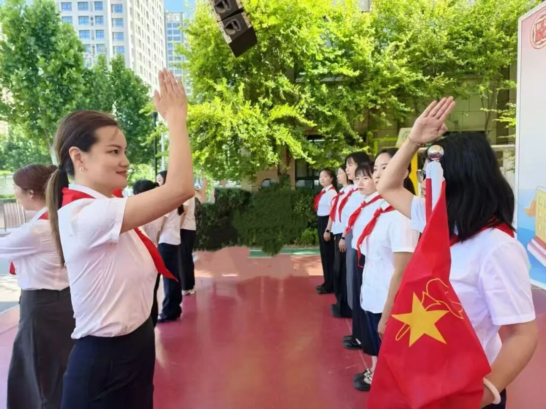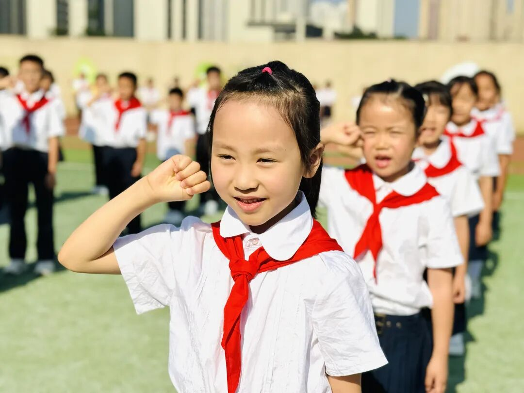 红绸卷动晨曦,翻涌的鲜红掠过稚嫩掌心,那抹跃动的鲜红不仅是旗帜,更是燎原星火,点燃了新队员们眼眸中闪烁的向往。