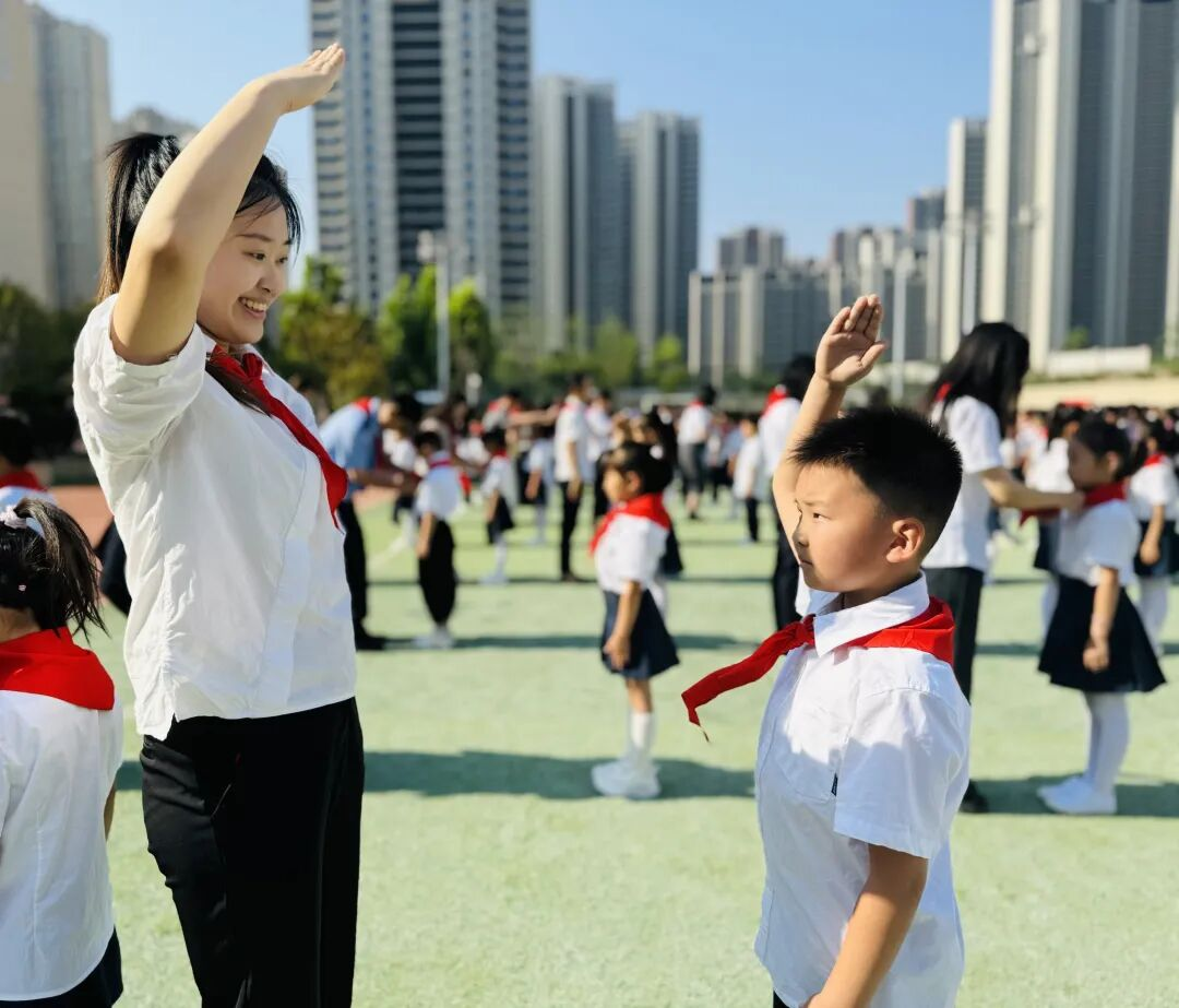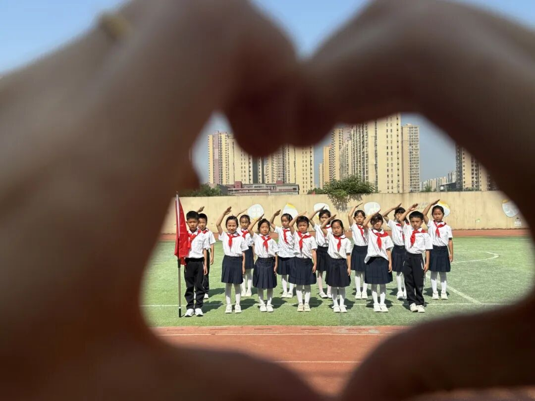 入队仪式后,队员们变换队形,用特别的方式致敬这份荣耀,致敬少先队!
