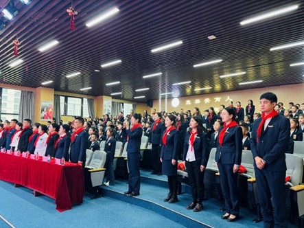 少先队员们共同唱响《中国少年先锋队队歌》,用嘹亮的歌声表达对党、对祖国、对少先队组织的热爱和祝福。