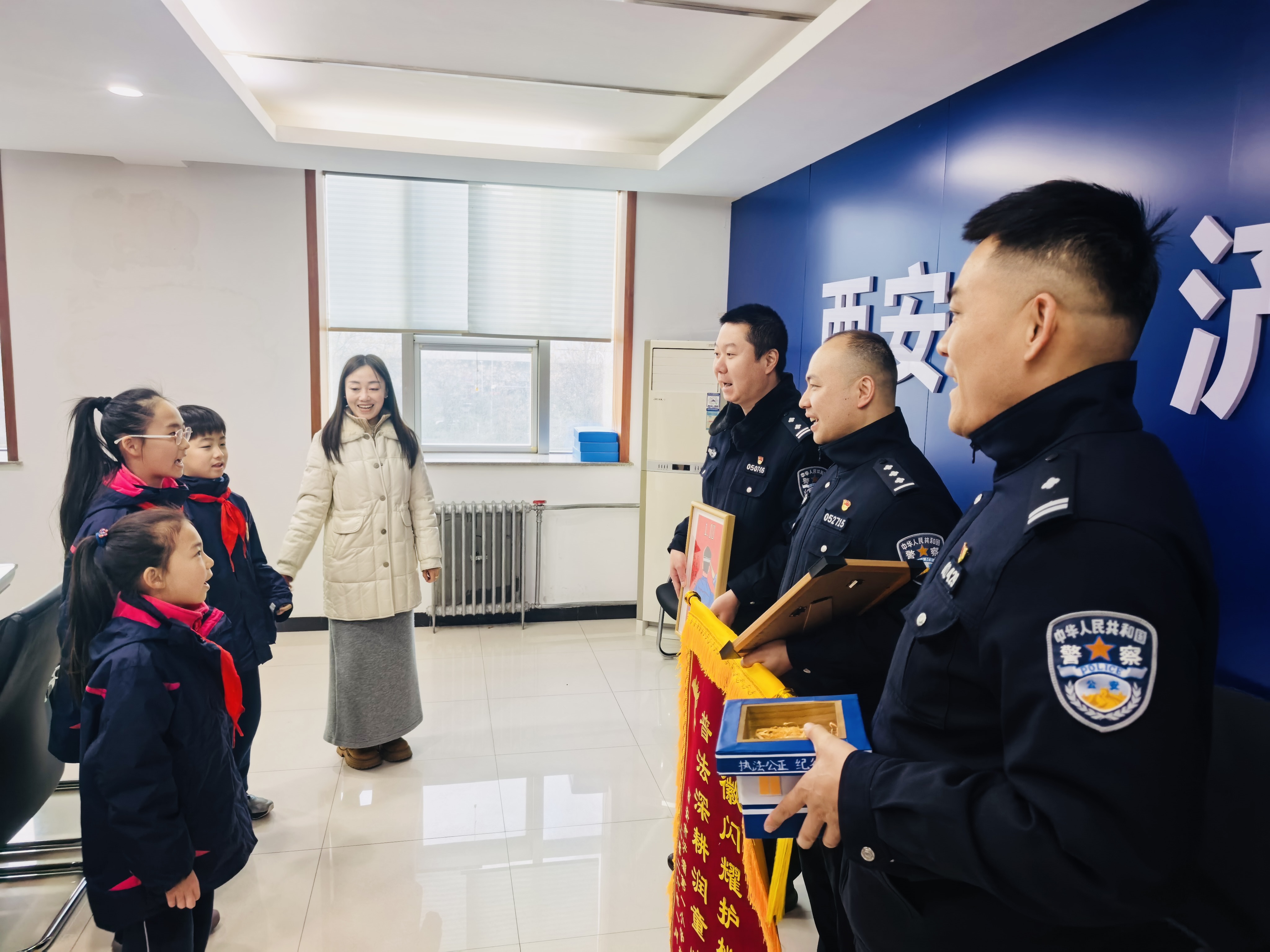 1月9日上午,孩子们分批走进公安浐灞国际港分局浐水西路派出所、辛家庙派出所、西安市公安局交通管理支队浐灞国际港三中队,以及西安市公安局浐灞国际港分局法制大队,他们怀着无比崇敬和感激的心情,把自己精心制作的手工作品,郑重地送到警察叔叔们的手中。